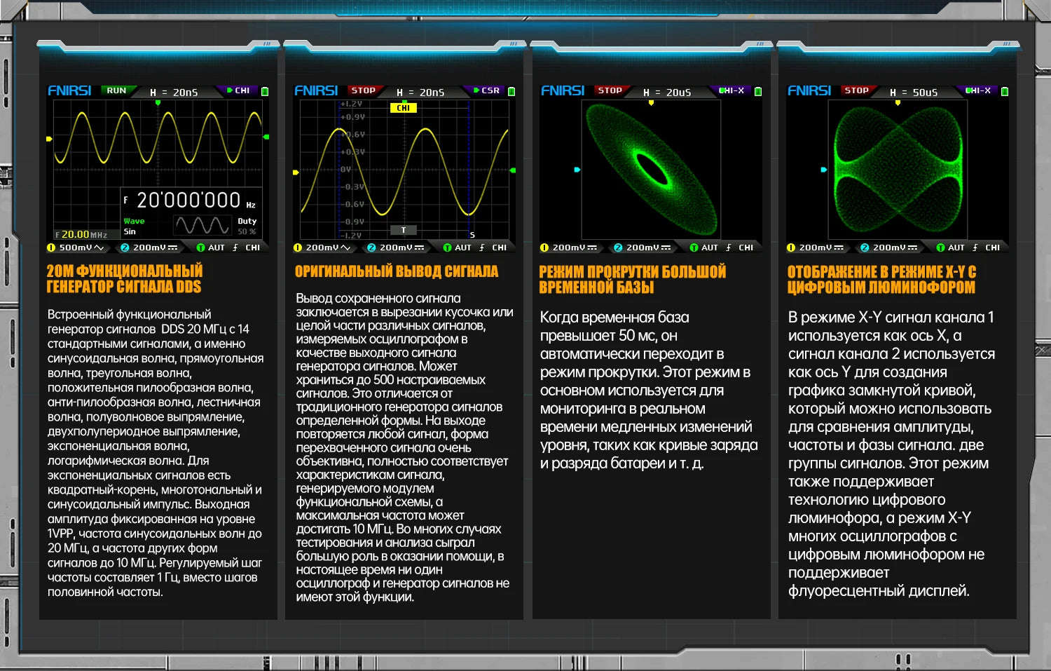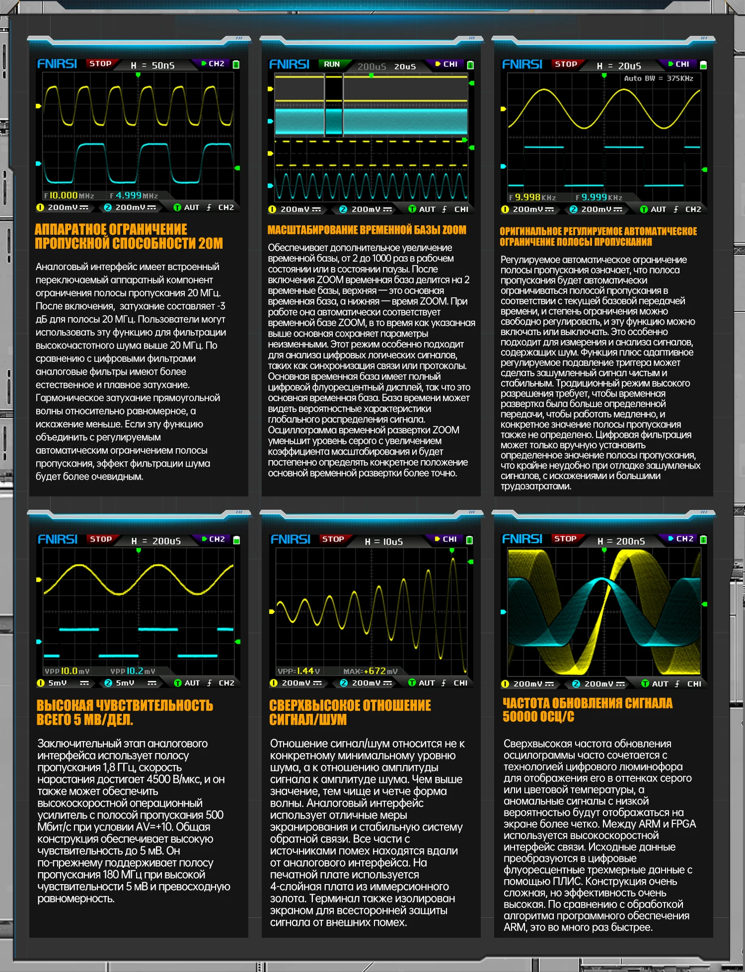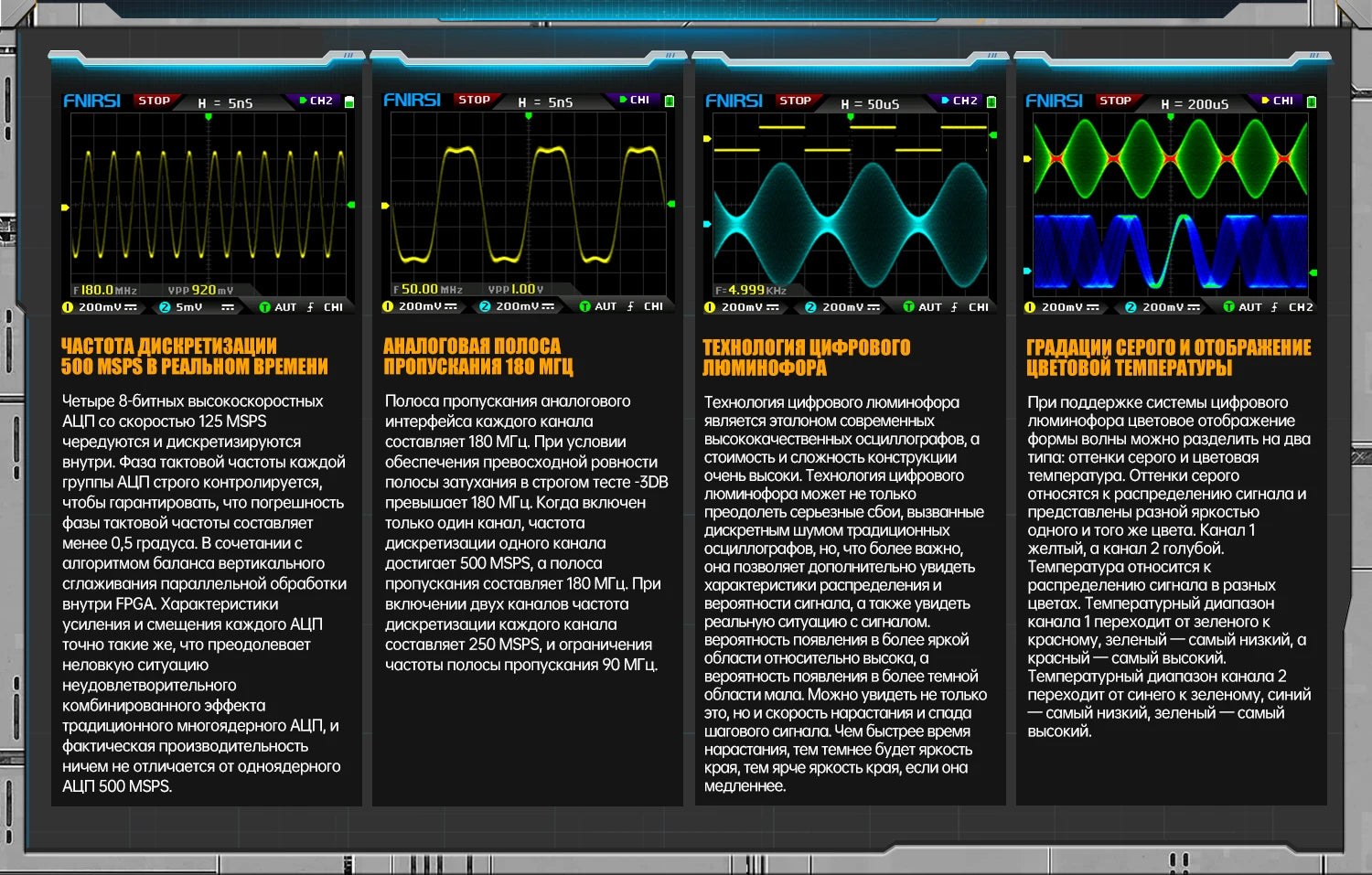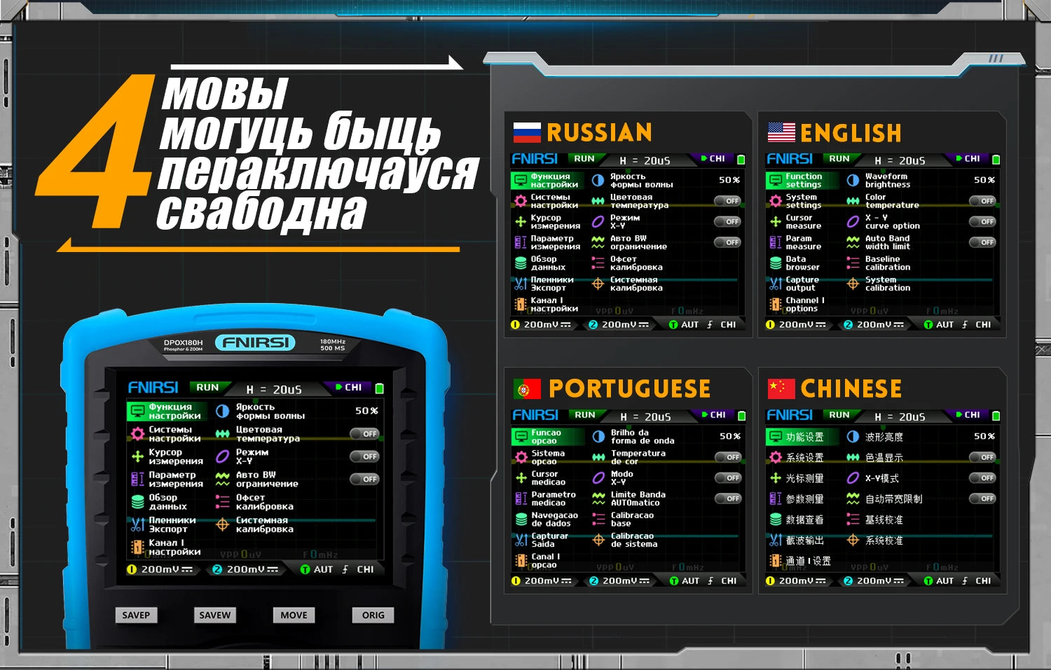 FNIRSI DPOX180H ру́сский язы́к портативный фосфористый цифровой 180 МГц 50000wfms/s генератор сигналов 20 МГц ZOOM
