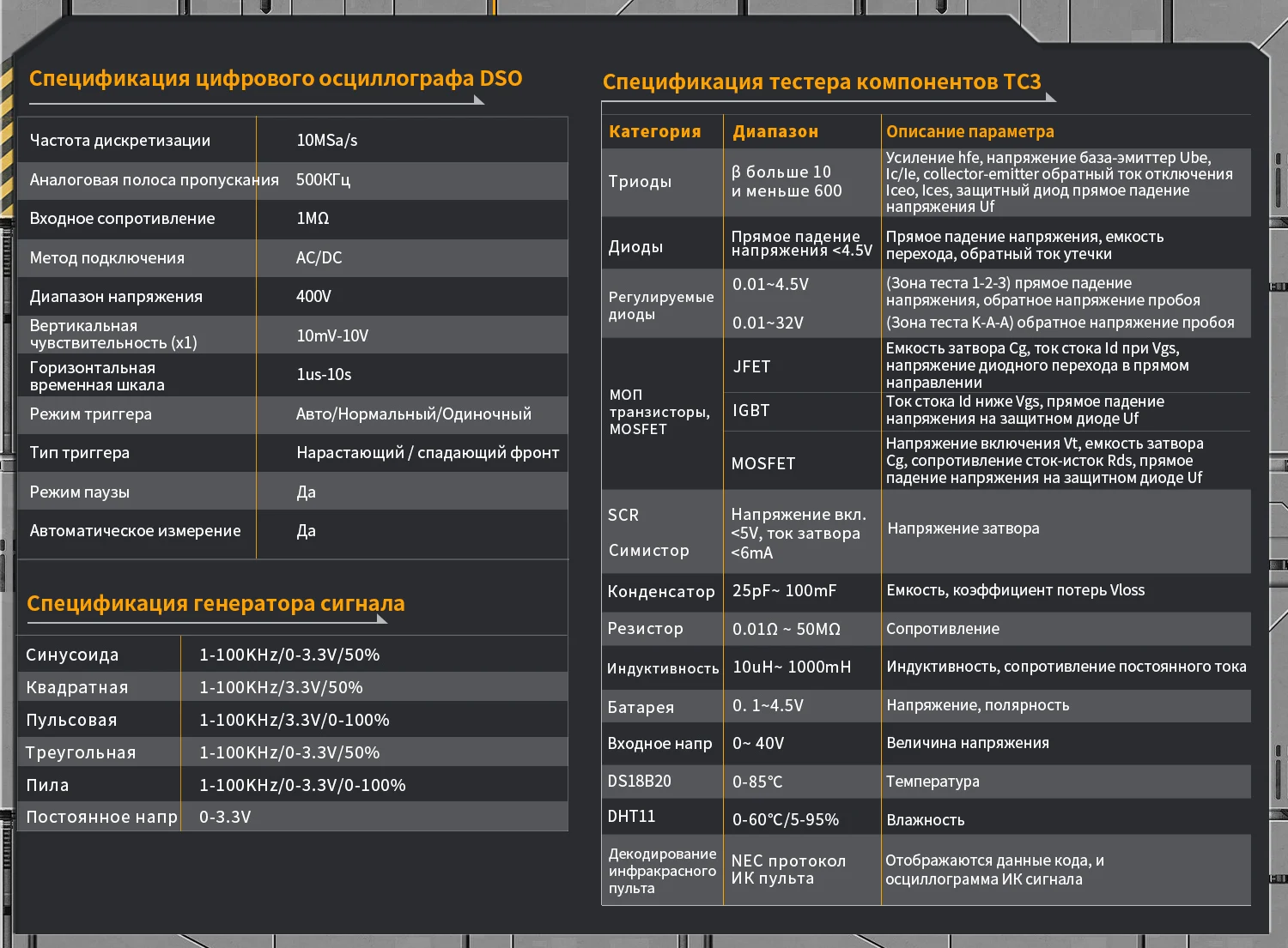 FNIRSI DSO-TC3 is an upgraded version of DSO-TC2. On the basis of DSO-TC2, it has upgraded capacitance ESR detection, function signal generator output, Electronic measuring instrument bandwidth and sampling rate improvement, input voltage and diode detection range increase and so on. The improvement in performance and function of DSO-TC3 makes the device more stable and accurate in the detection process.