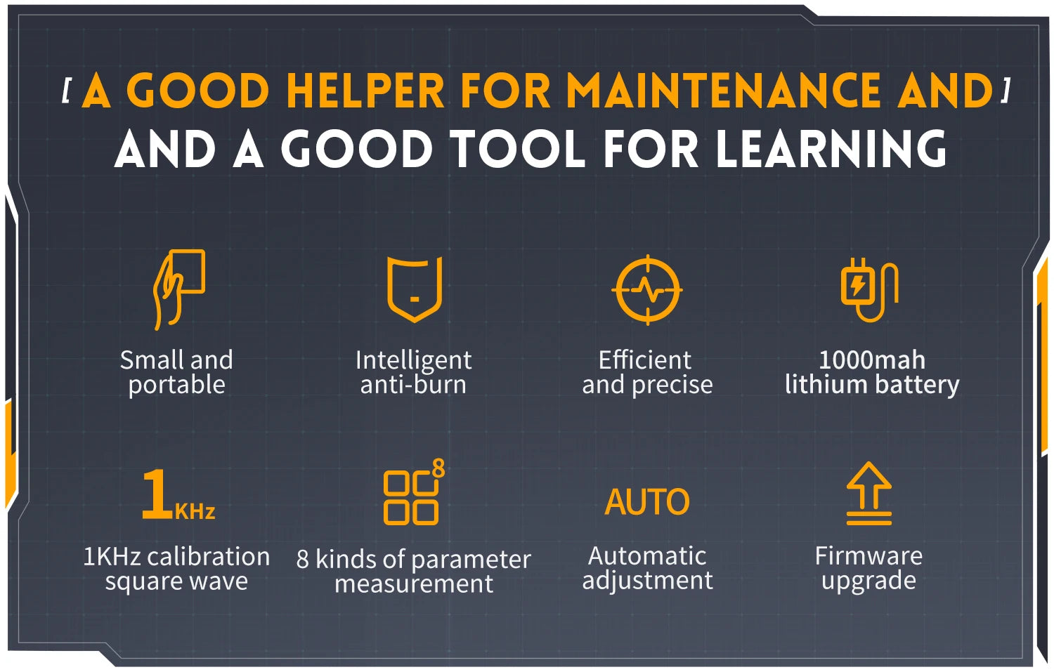 In addition, it also comes with multiple functions signal generator (10KHz). Equipped with a 2.8-inch 320 * 240 resolution HD LCD screen and a built-in 1000mAh high-quality lithium battery, it can be used for about 4 hours when fully charged.