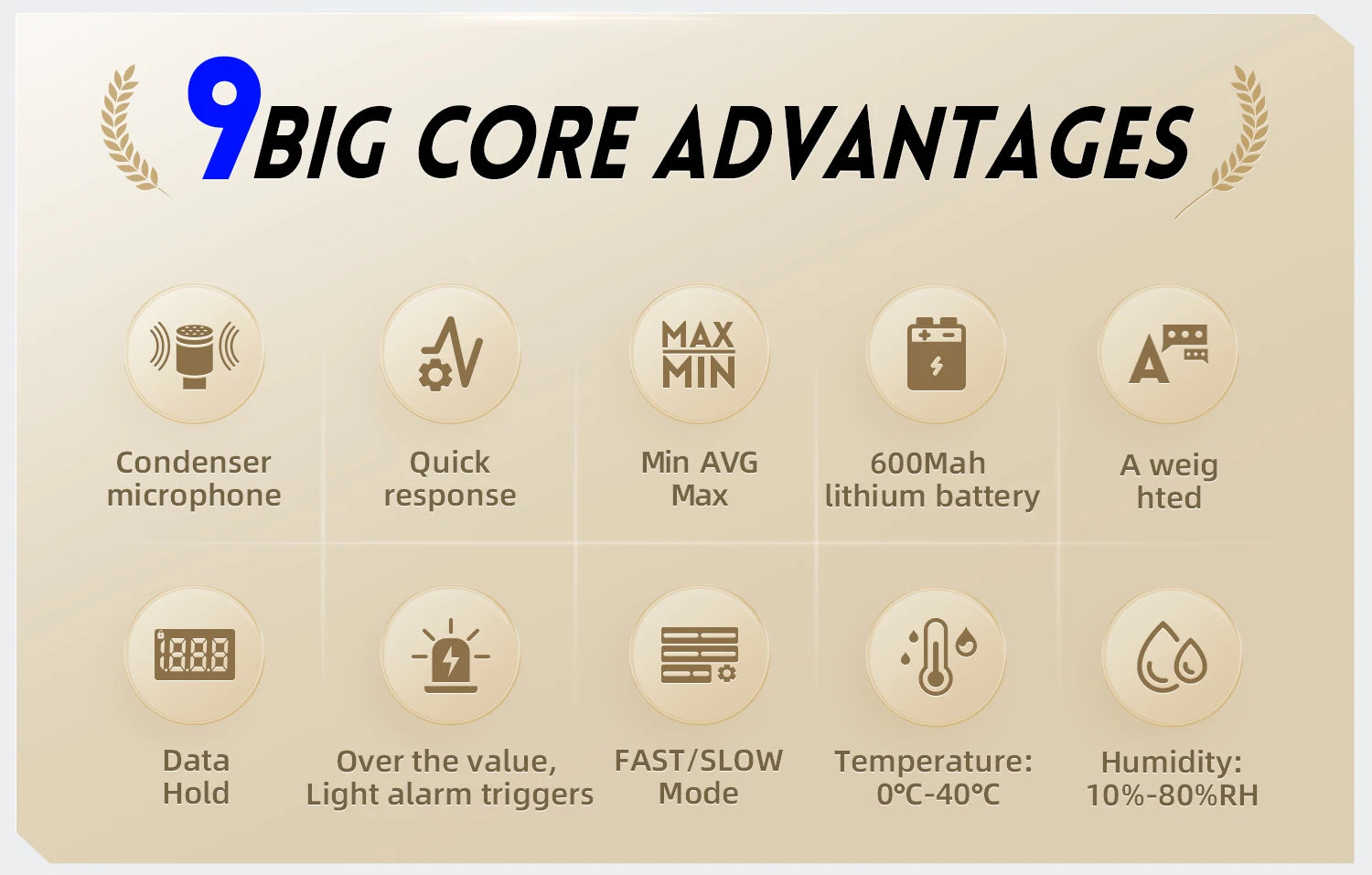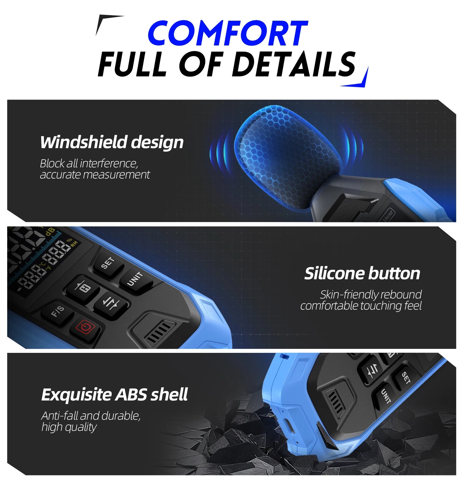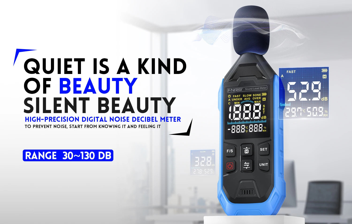 FDM10 digital noise tester is a device used for noise detection and testing in public places such as living, production, construction sites, and squares. Noise pollution is one of the most influential environmental pollution. Higher decibel noise can even cause serious damage to human eardrums, resulting in deafness, insomnia, dizziness and headaches. The application of FDM10 digital noise tester can provide the decibels reached by the noise so that relevant measures can be taken to control and reduce the noise. The measurement unit of sound is decibel. FDM10 digital noise tester has a highly sensitive sensor, high precision, wide application range, and can be widely used in noise measurement in various environments.