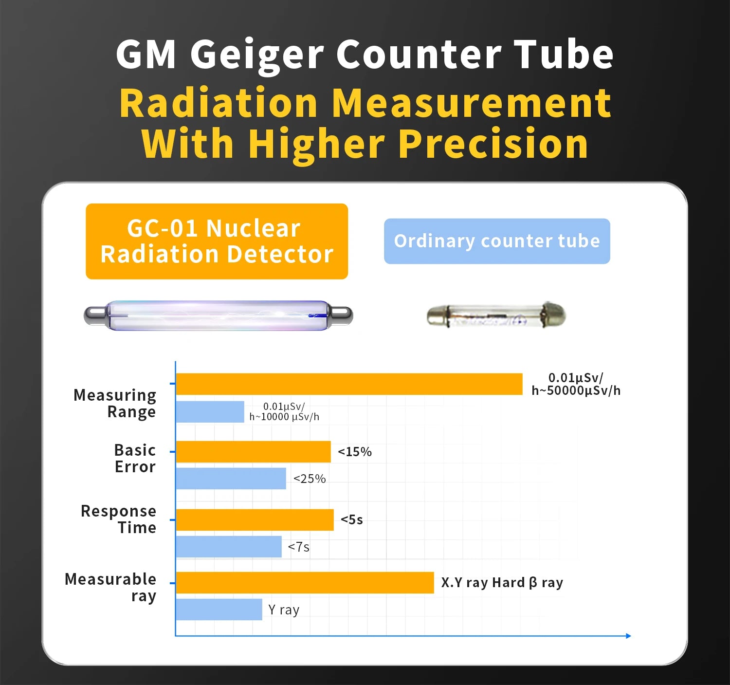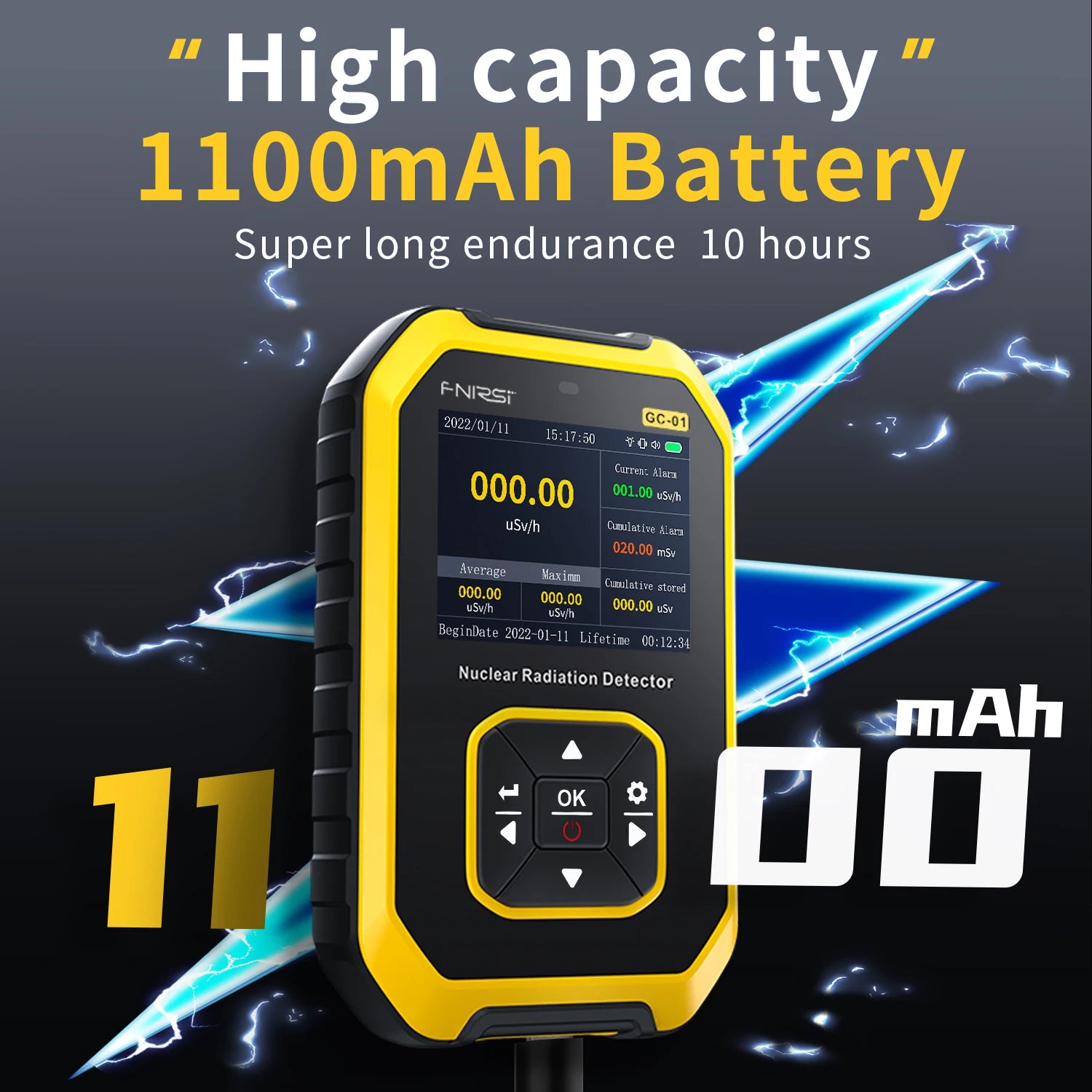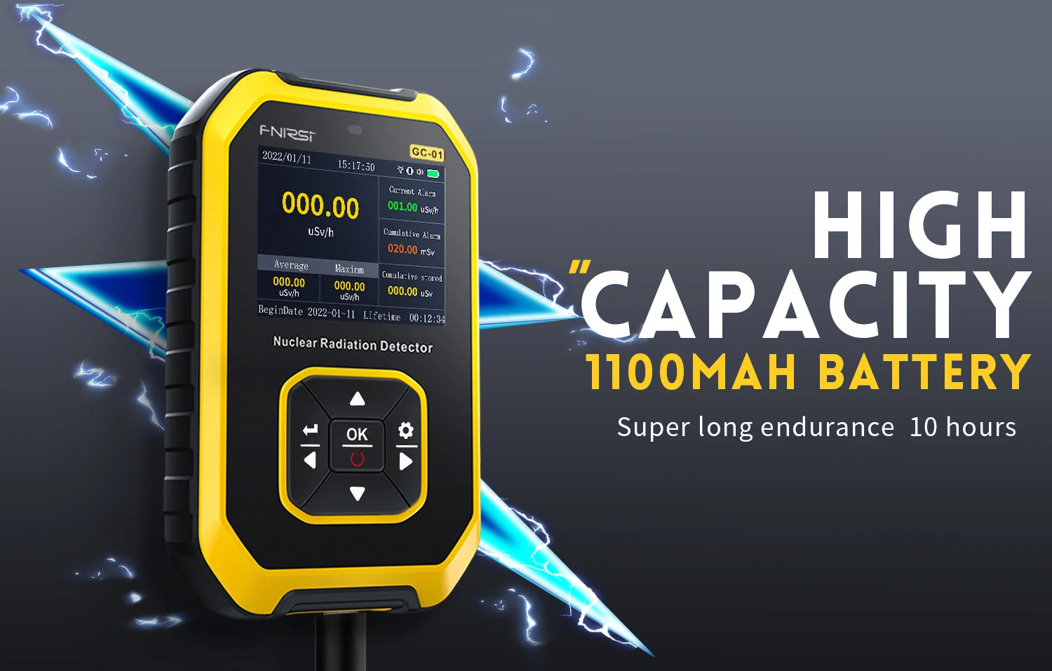 The FNIRSI GC-01 nuclear radiation detector uses a higher-precision Geiger-Miller counter.