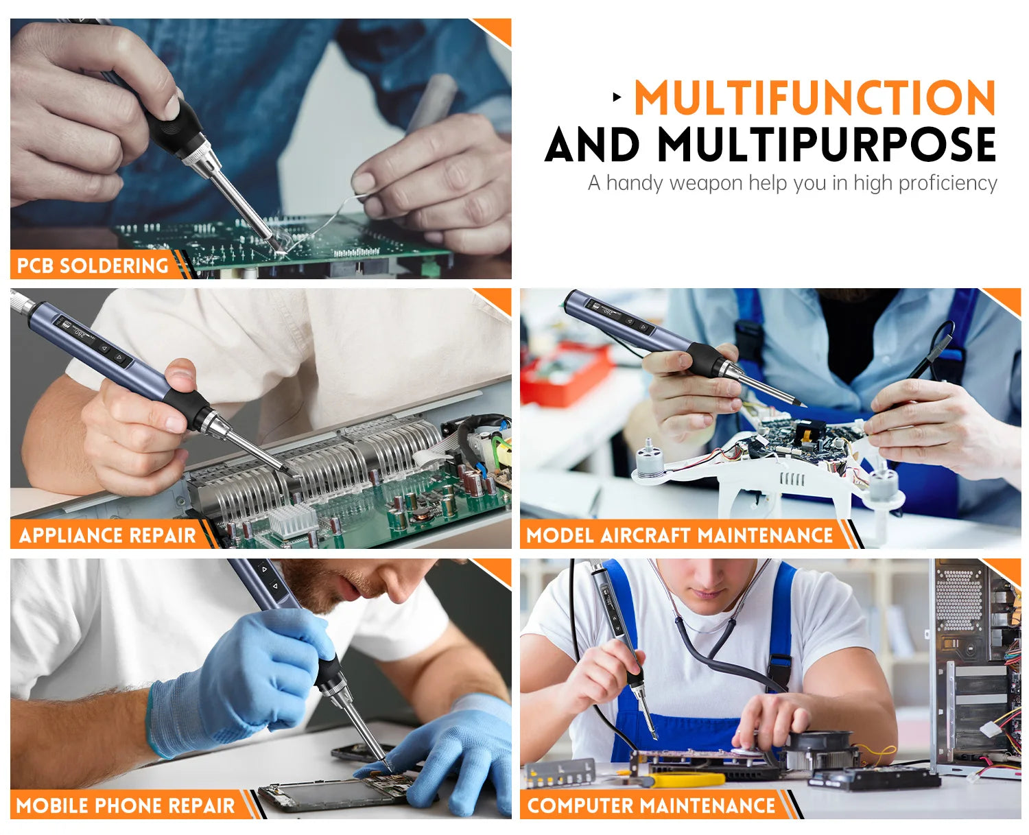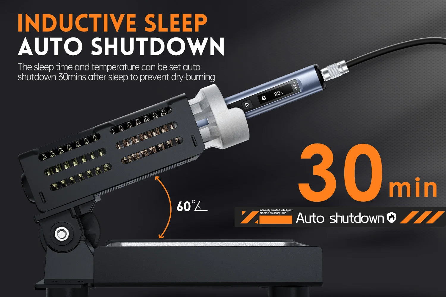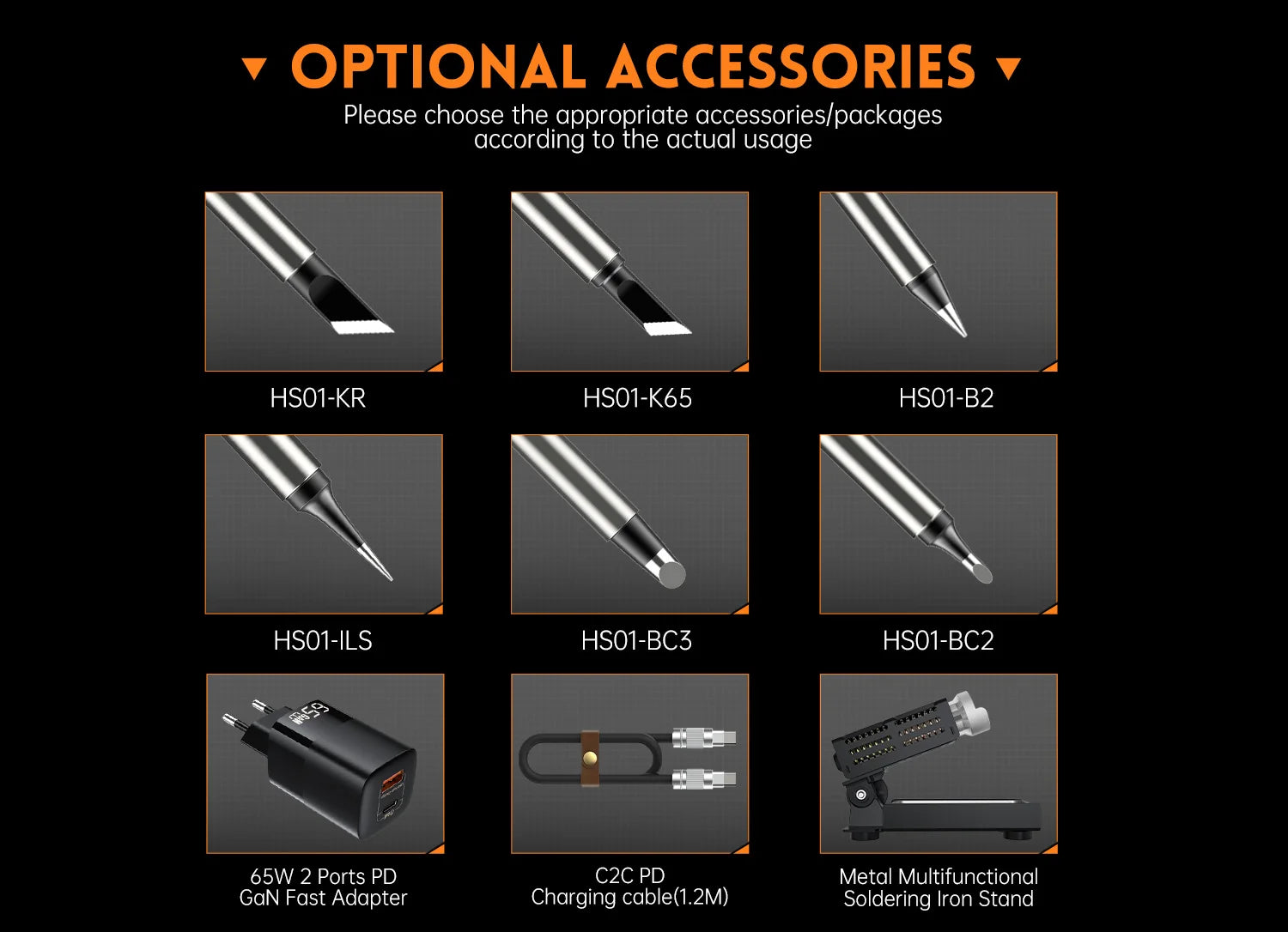 HS-01 is an intelligent constant temperature electric soldering iron. Its pencil-size and ergonomic design make you fondle admiringly. The anti-scald cap design allows you to take it away at any time. It has the characteristics of light weight, low power consumption, small size and high thermal efficiency. PD65W power supply and DC24V two power supply methods solve the problem of power supply difficulty for you. Wide temperature adjustable range (80-420℃), easy to weld various components and wires. HS-01 will be your indispensable tool.