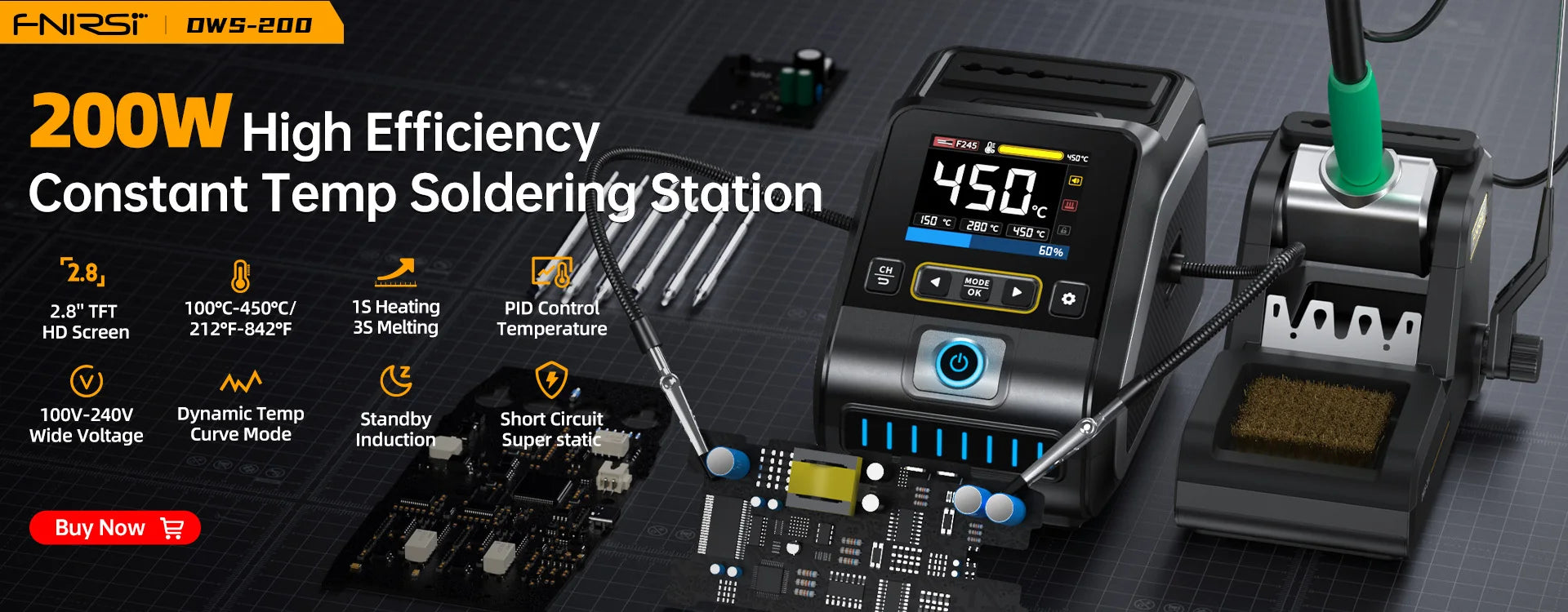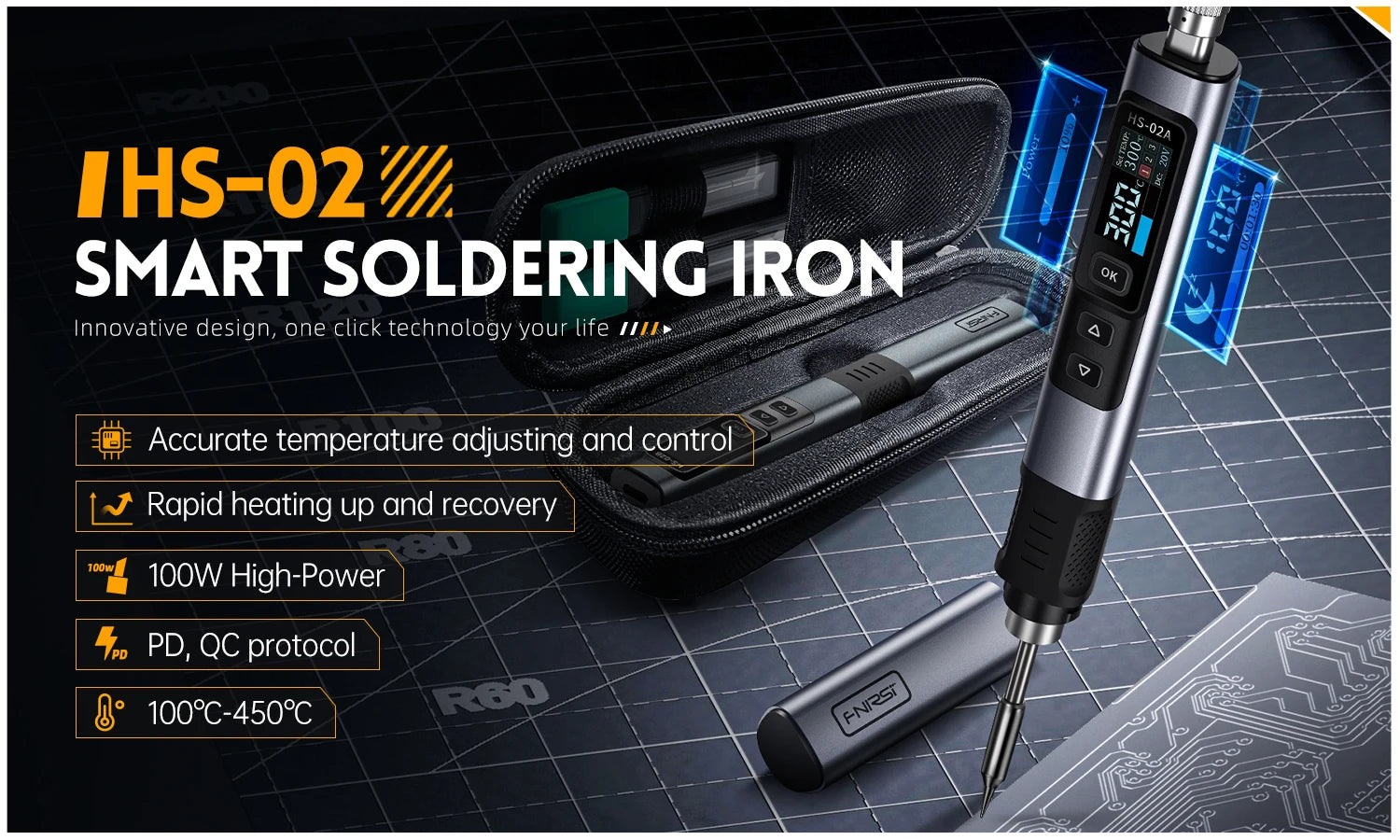 FNIRSI HS-02 Adjustable Temperature Soldering Iron DC 24V 100-450℃ Welding Solder Rework Station PD 100W Portable Repair Tool