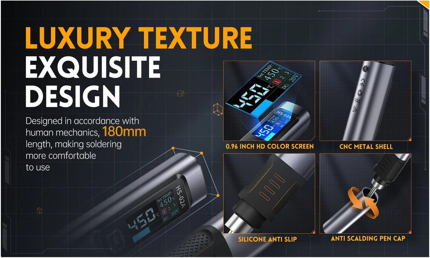 HS-02 is a portable screen display intelligent soldering iron launched by our company. This soldering iron has the