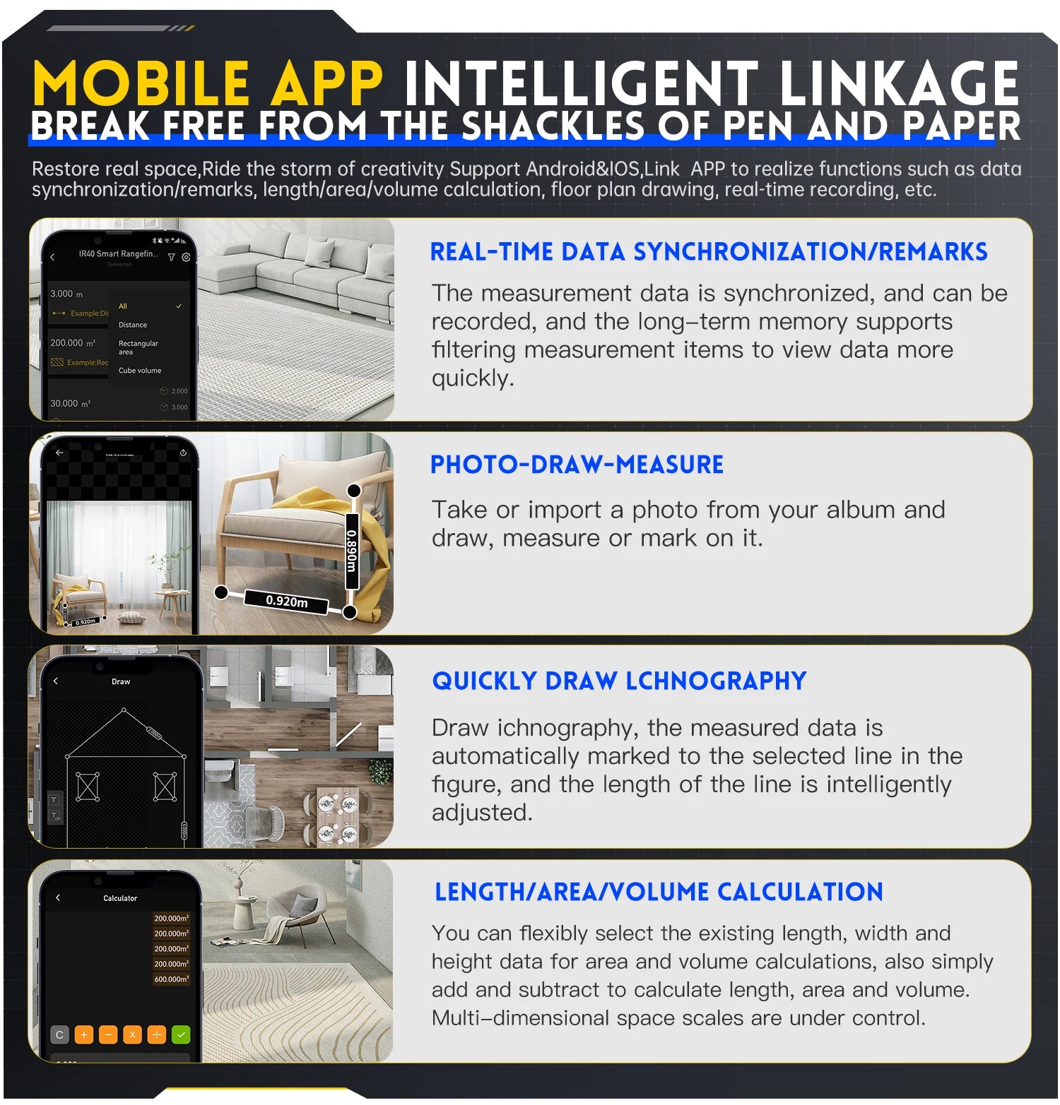 FNIRSI IR40 Laser Rangefinder 40M Laser Tape Measure Accurate Distance Meter Construction Roulette Connect To APP To Draw