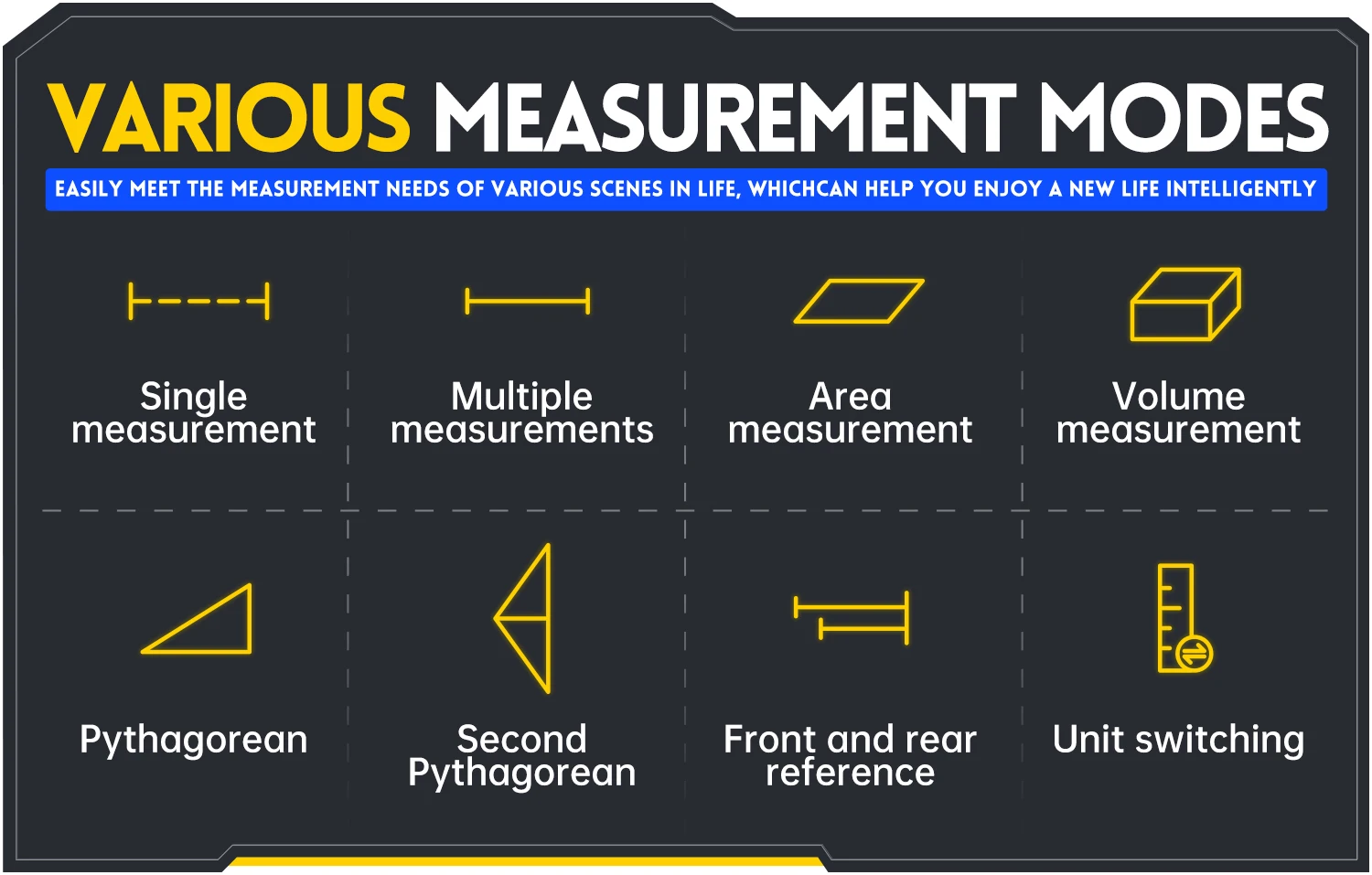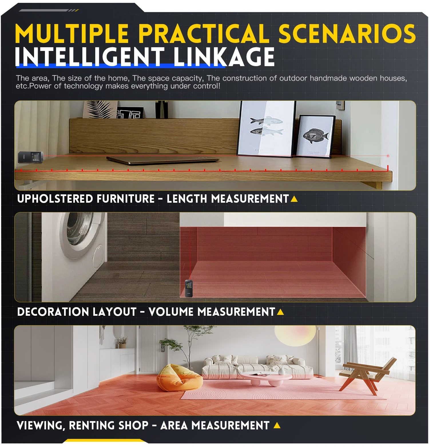 It is ideal for interior decoration, remodeling, floor and wall coverings, real estate appraisals and appraisals, making it a quick, easy and accurate method of measuring even within walking distance.