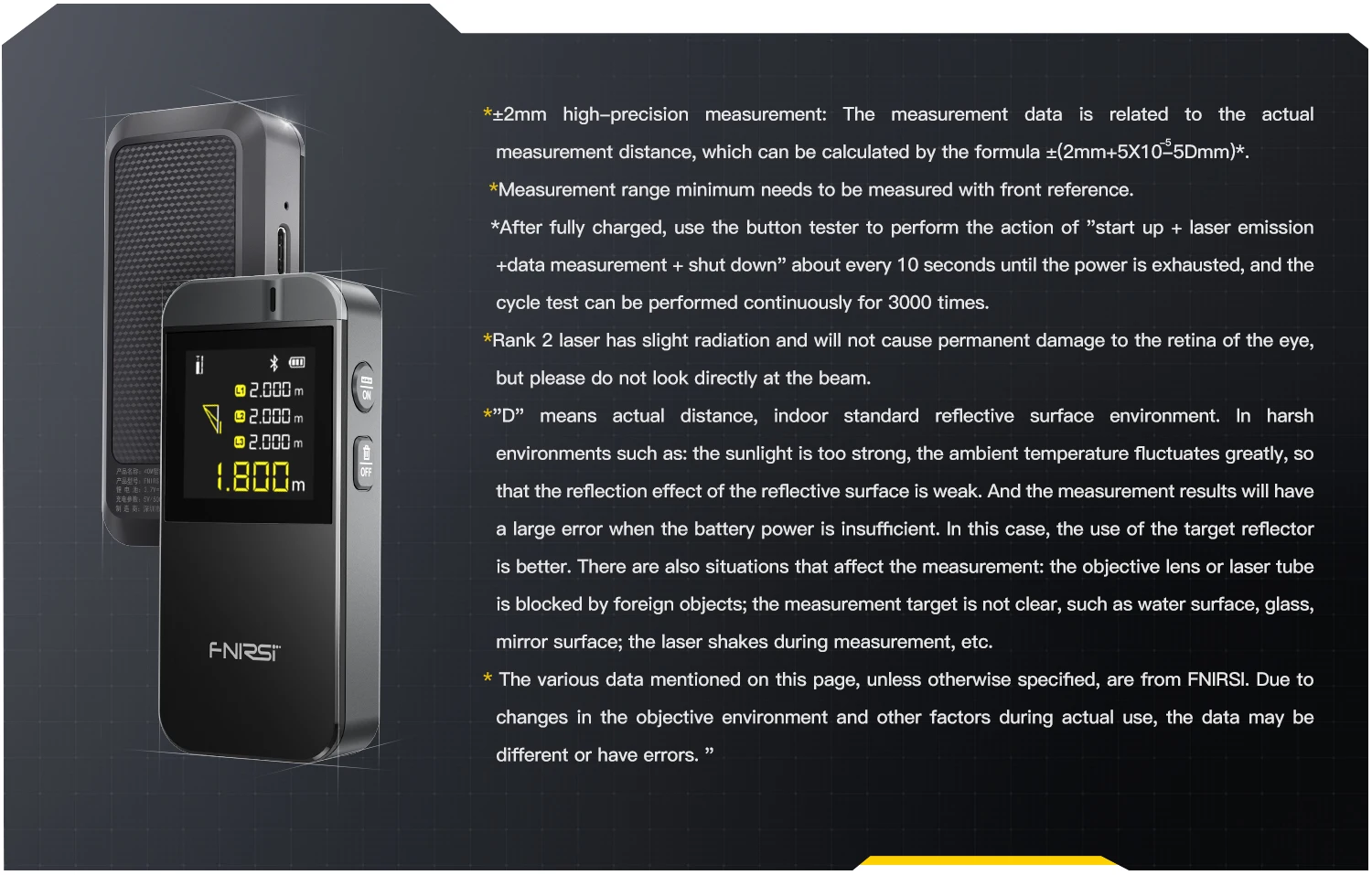 Measurement Accuracy: ±(2mm+5x10-5Dmm)