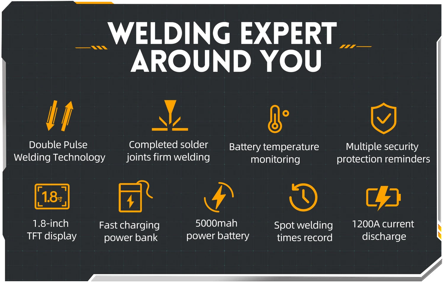 Double pulse spot welding technology is adopted to make the welding more stable and firm, and it also has the function of power bank.