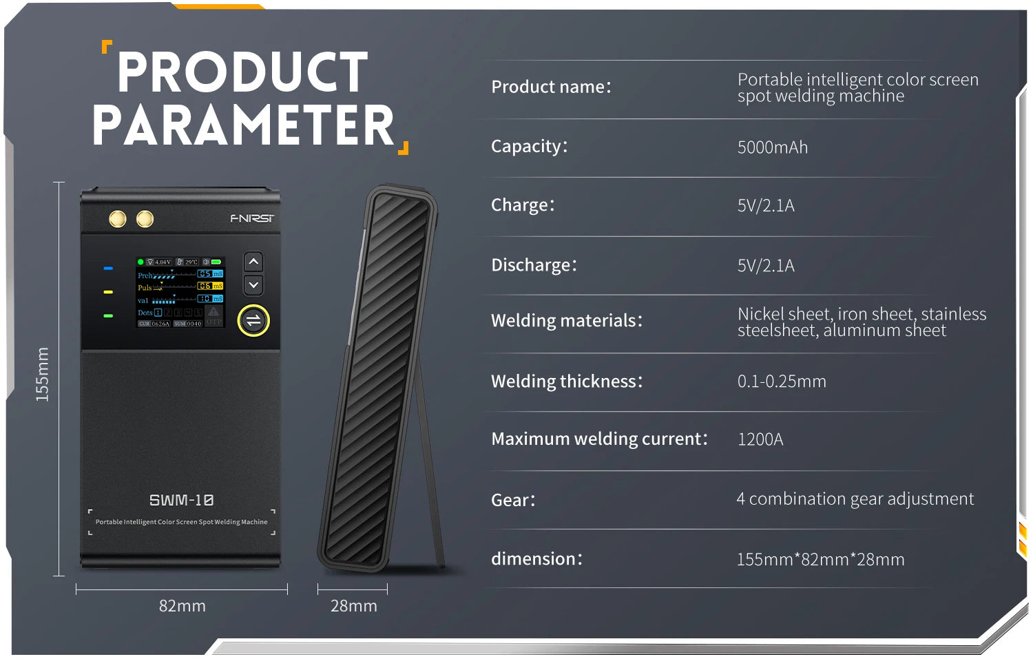 FNIRSI SWM-10 Portable Battery Spot Welder DIY Mini Welding Machine 18650 Battery Pack Welding Tool 5000mah Weldable 0.25mm