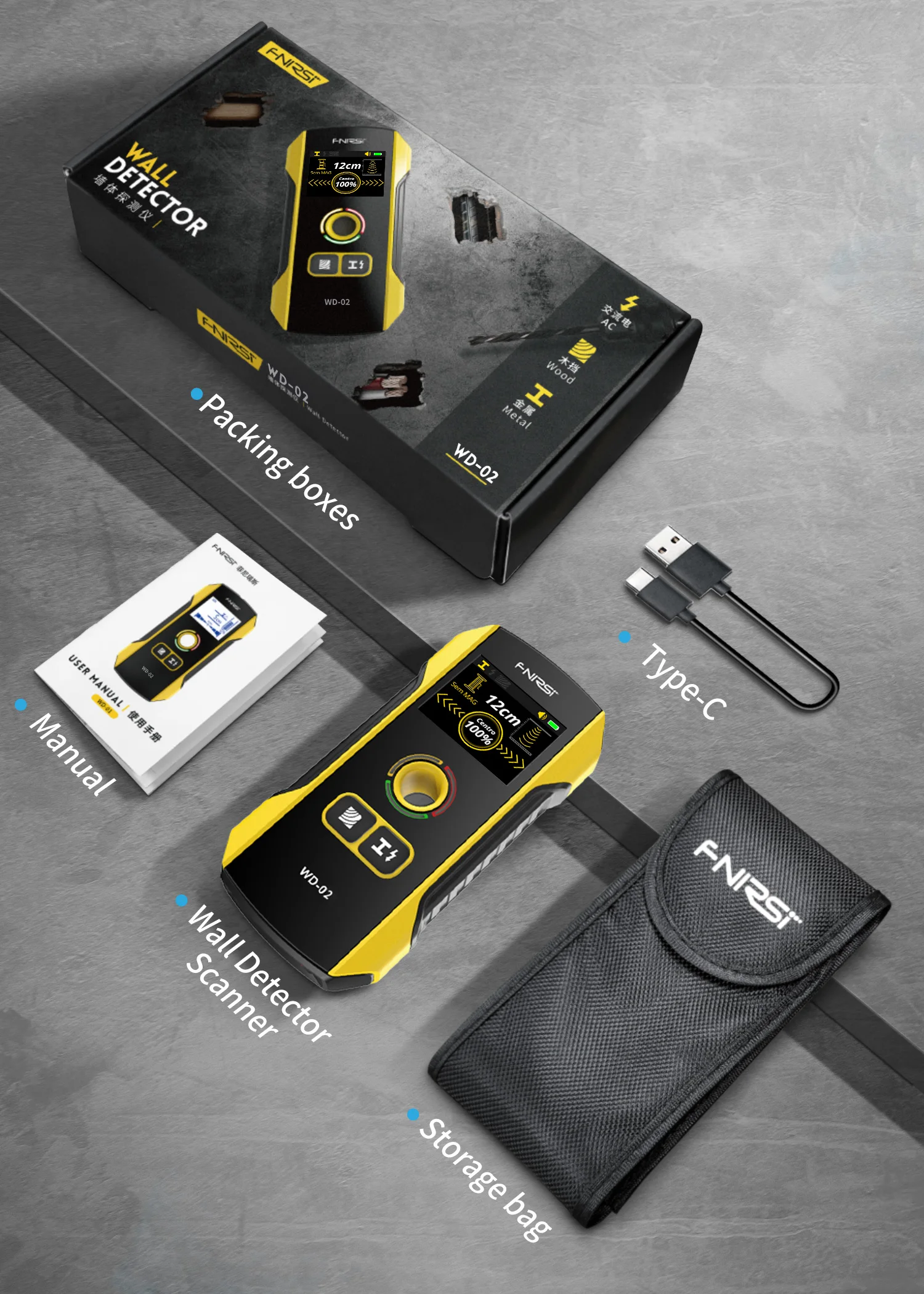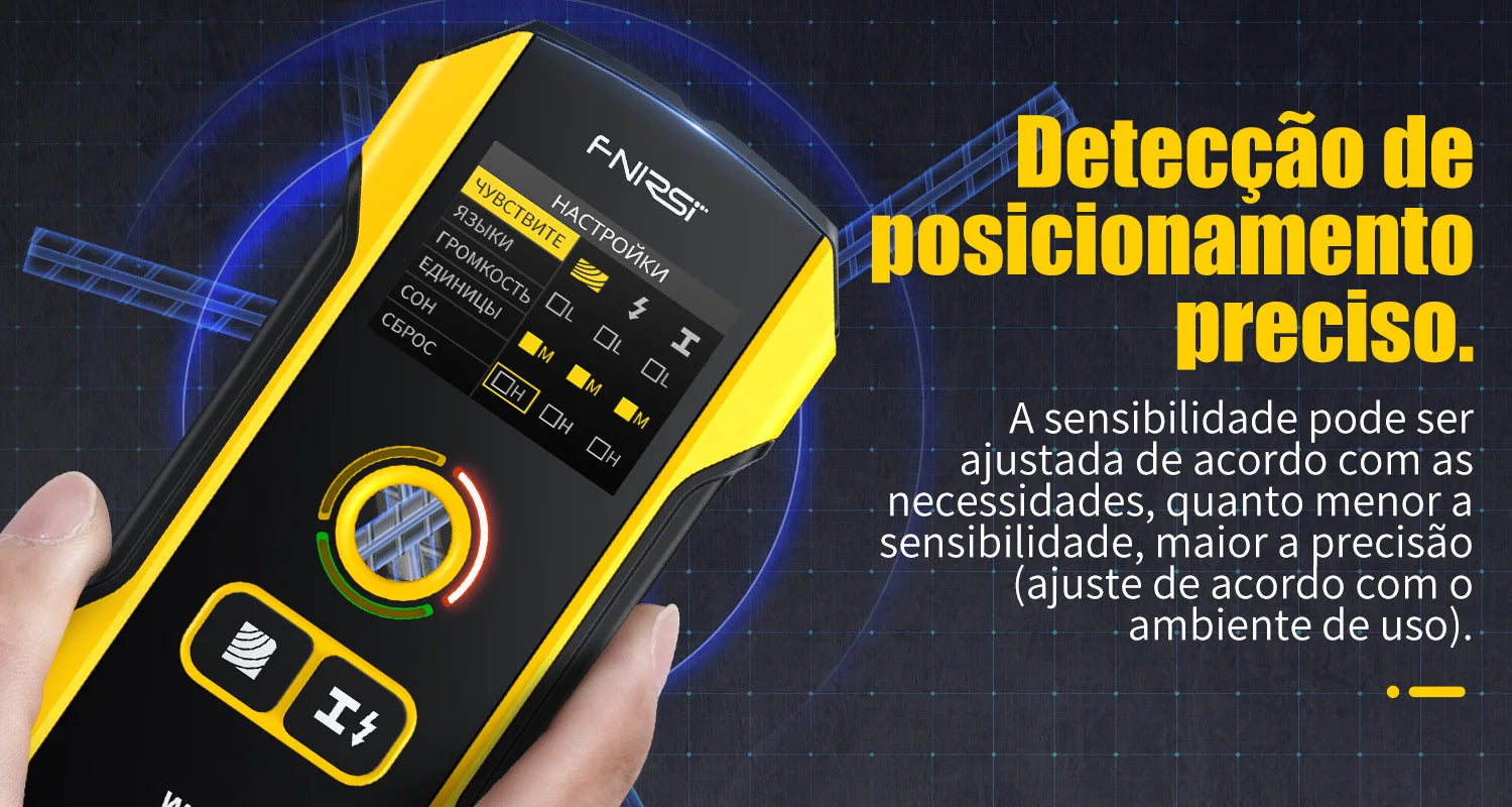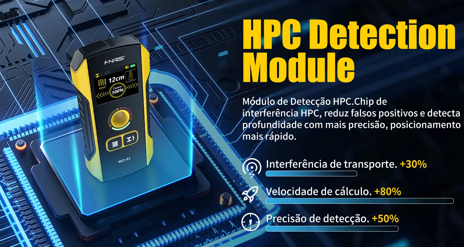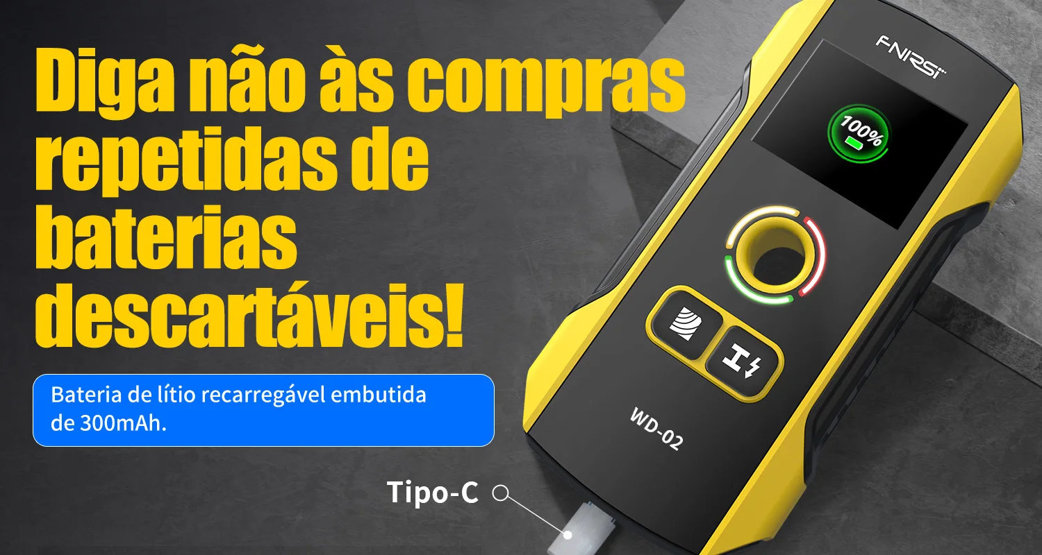 FNIRSI WD-02 Versão em português Detetor de parede Localizador de vigas Cabos CA com carga Vigas de metal Vigas de madeira