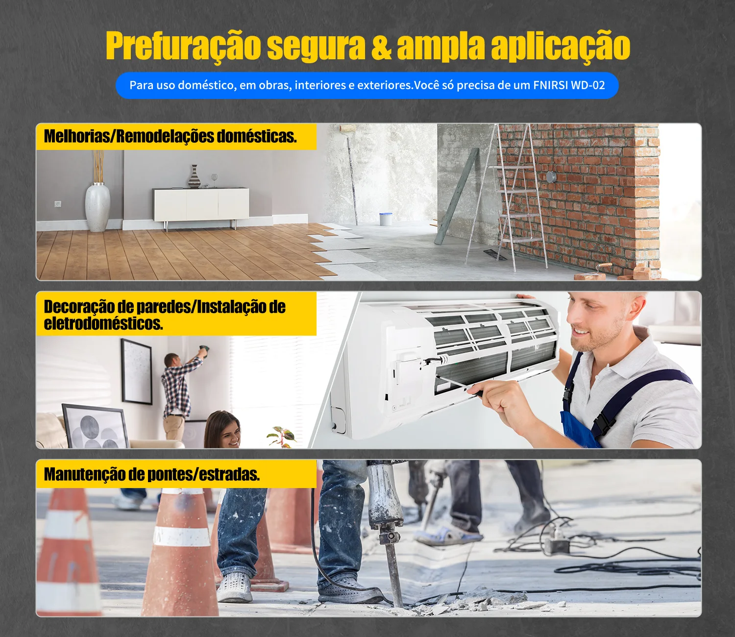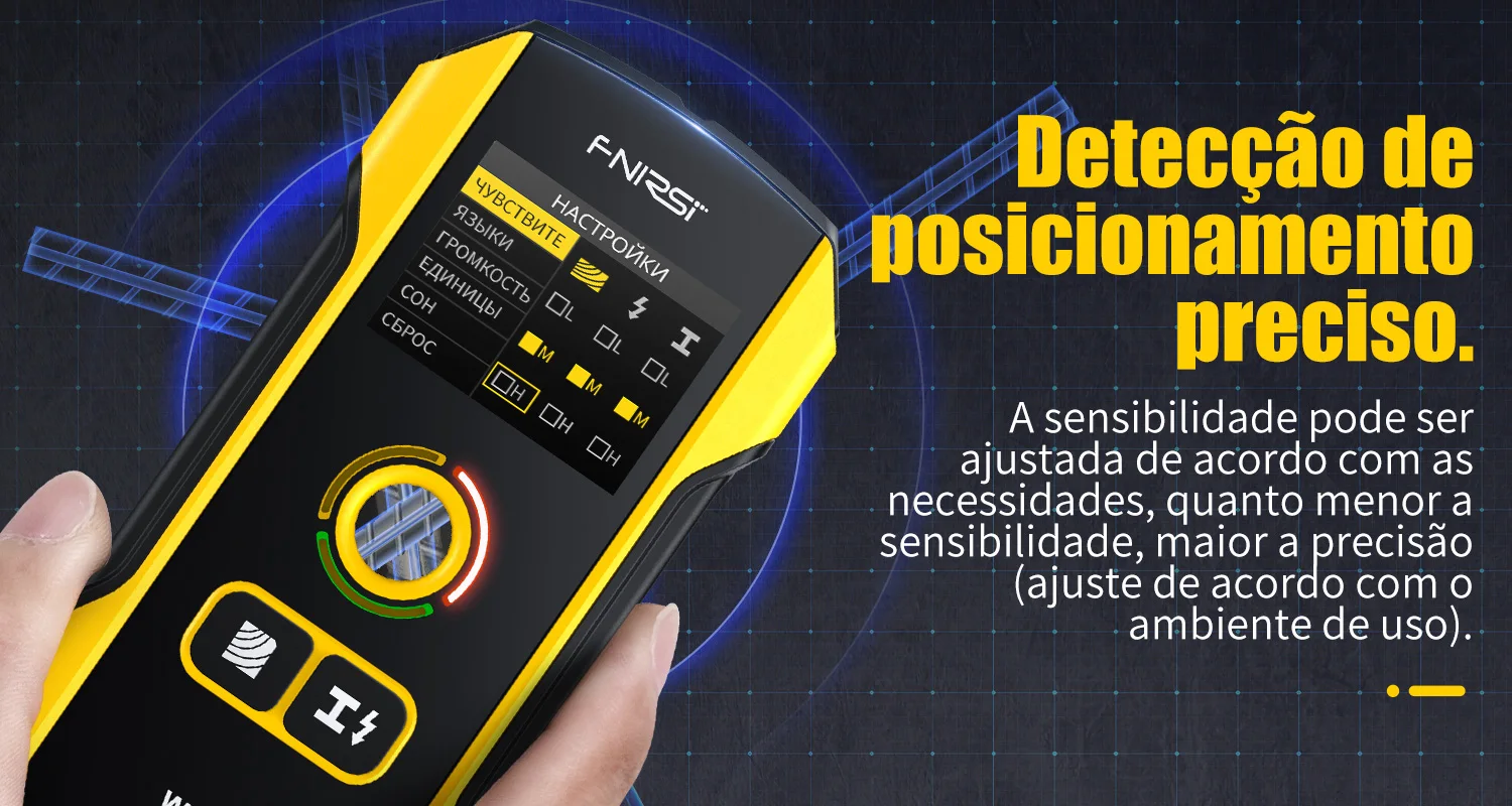 O detector de parede FNIRSI WD-02 é uma versão atualizada do WD-01, o WD-02 atualizou a tela TFT de alta definição e a nova interface de interface do usuário. Também foram adicionados 6 idiomas: russo, inglês, português, japonês, chinês simplificado e chinês tradicional. Seu ajuste de sensibilidade de 3 níveis aumenta a precisão da medição. Ele pode ser usado para detectar barras de aço, vigas de metal, tubos de metal, madeira, fios em paredes, tetos e pisos. 3 modos de detecção são projetados, modo de detecção de metal, modo de detecção de madeira e modo de detecção AC para atender às suas diferentes necessidades de trabalho. O novo design do orifício de posicionamento não tem mais medo de perfurar fios e barras de aço. Amplamente utilizado em decoração de interiores, instalação doméstica e outras indústrias, para que várias construções possam ser realizadas com segurança.