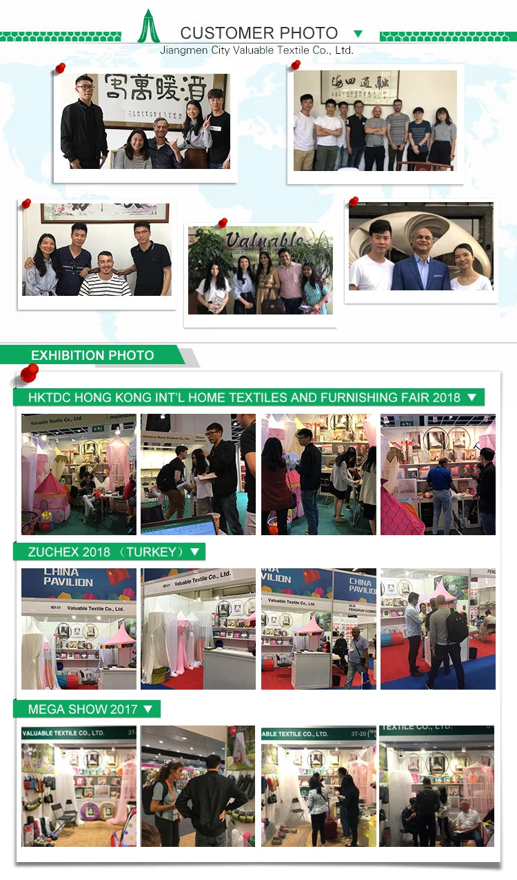 Valuable Textile Co.,Ltd. Found in 1991,located in Jiangmen Guangdong China,is the well-known textile and garment industrial zone. Valuable, owns 10,000 square meter, is an OEM & ODM factory, specializes in producing different kinds of Indoor and Outdoor Mosquito Nets, Camping Tents, Window and Door Net Screens, Food Cover Nets, Laundry Bags, Kids Play Tent etc.