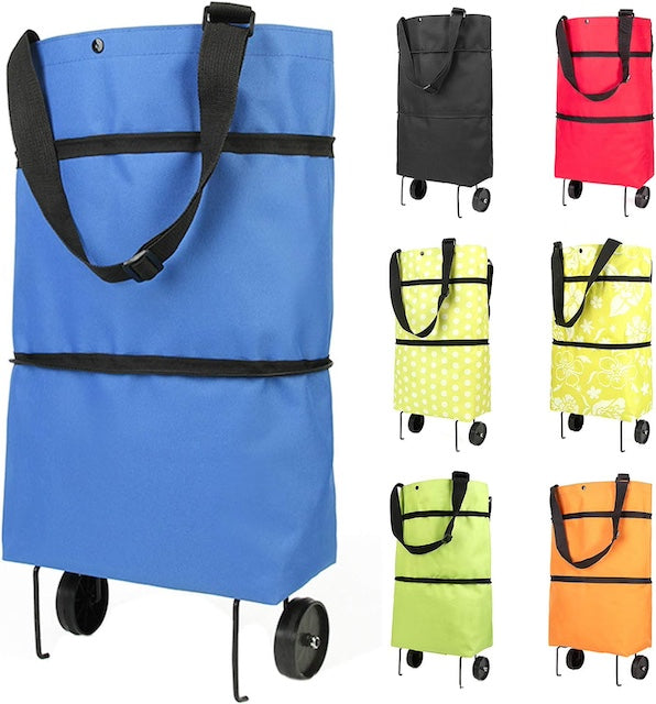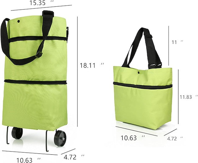 - Folding Expandable Shopping Bag with Wheels: Foldable design for you to switch between shoulder bag or expand to full size as a shopping cart.