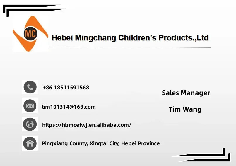 Hebei mingchang children's products co., LTD is located in guangzong industrial park, guangzong county, hebei province, close to China's largest bicycle parts production base, the geographical location is superior, convenient transportation.The total area