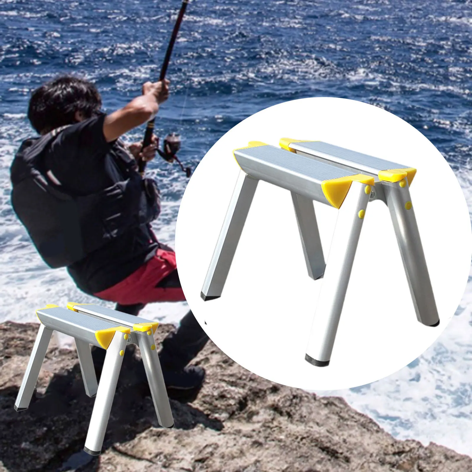 Folding Ladder Multiuse Home Use Ladder Nonslip Step Stool Aluminum Alloy Wide Step Portable Fishing Stool for Home Office Shop