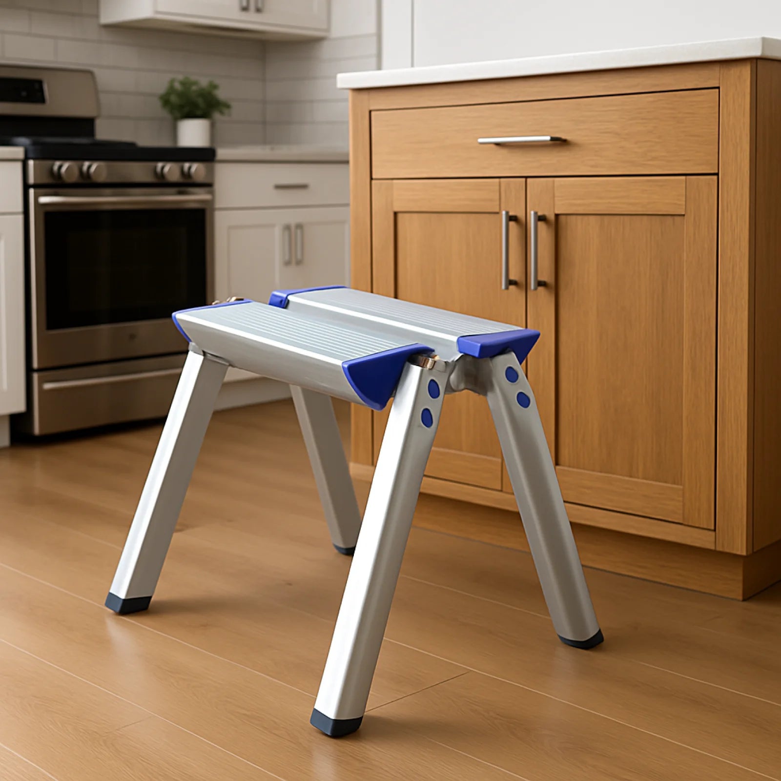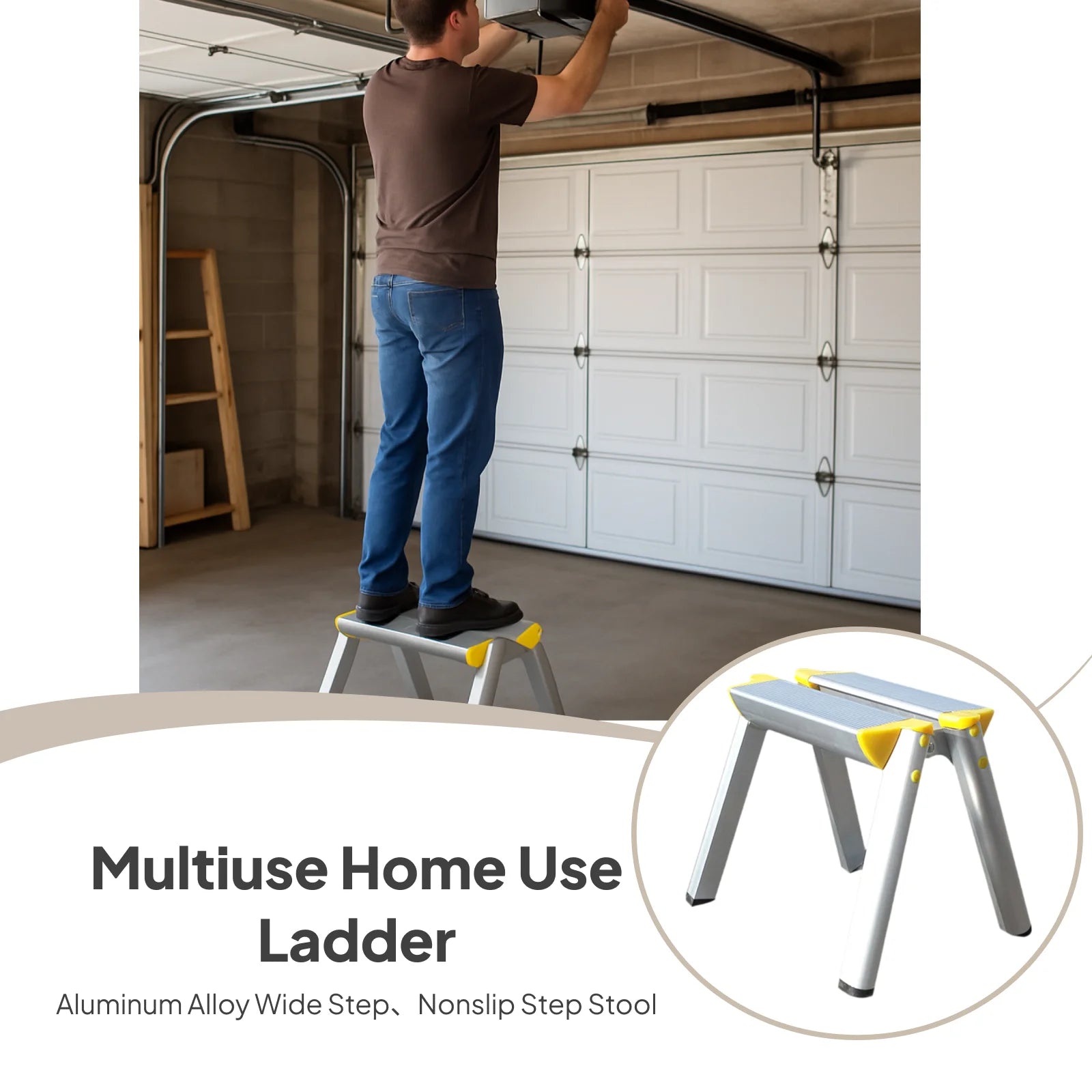 【Premium Material】: This folding ladder is made of sturdy aluminum alloy to ensure long term use and reliability.