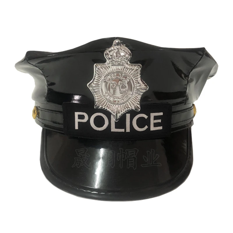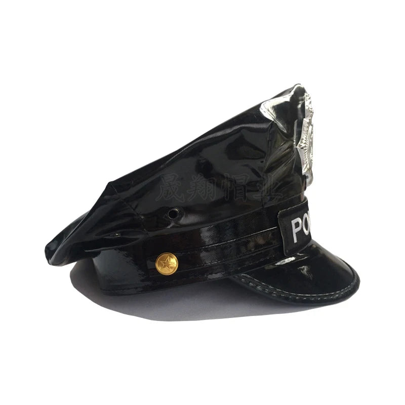 police Officer hat,large brim uniform hat, badge on the front,the decoration and harmonious color are delicate for you to create a cool party.