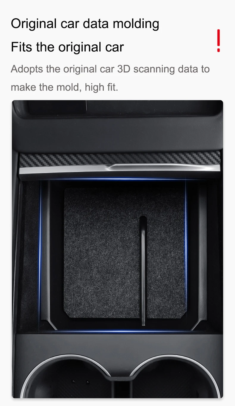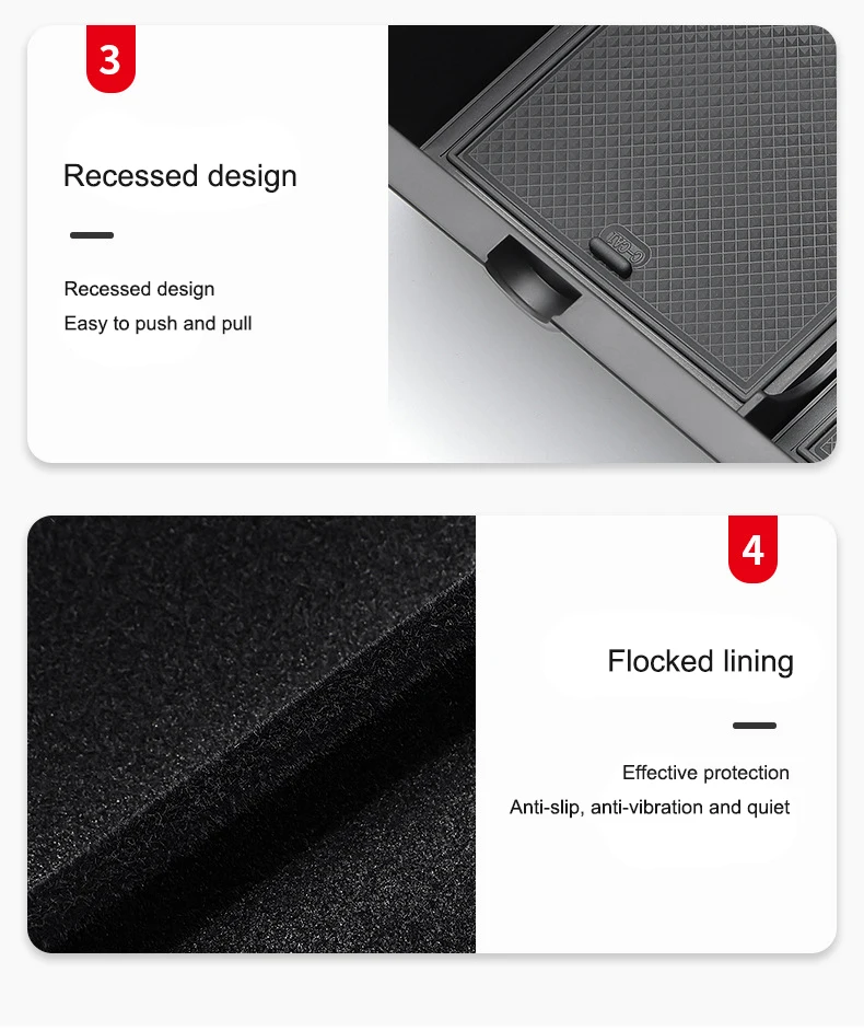 For Tesla Model 3 Highland 2024 Storage Box Flocking New Model 3+ Center Console Armrest Storage Box Stowing Tidying Cup Holder