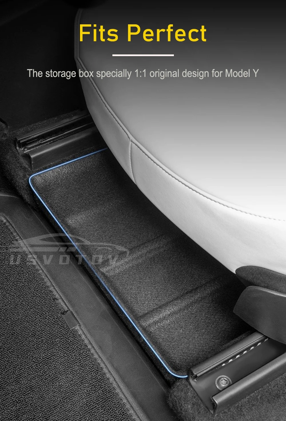 ✓ Install Easily - Just put it in is ok. Tesla Model Y hidden storage remains securely in place without sliding, simply place it under the seat of your Model Y in less than a minute ;