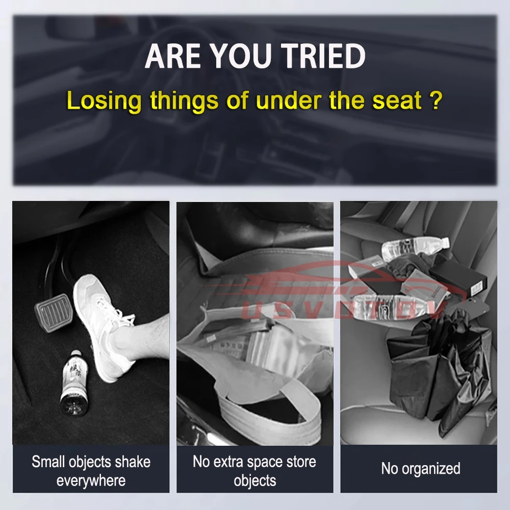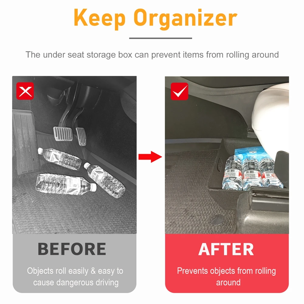 ✓ A Must Have Accessories - Tesla model y storage bins under seat effectively store various small items, such as high heels, sports shoes, guns, knives, cables, umbrellas, tools and more;