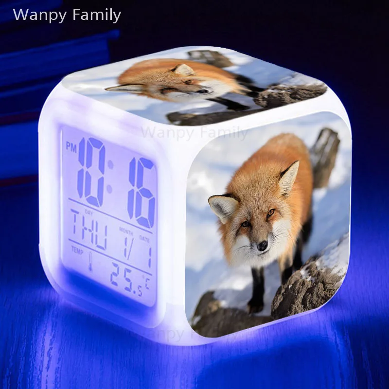 Fox Alarm Clock 7 Color Glowing LED Digital Alarm Clock Multifunction Night Light Electronic Watches Clock Kids Birthday Gifts