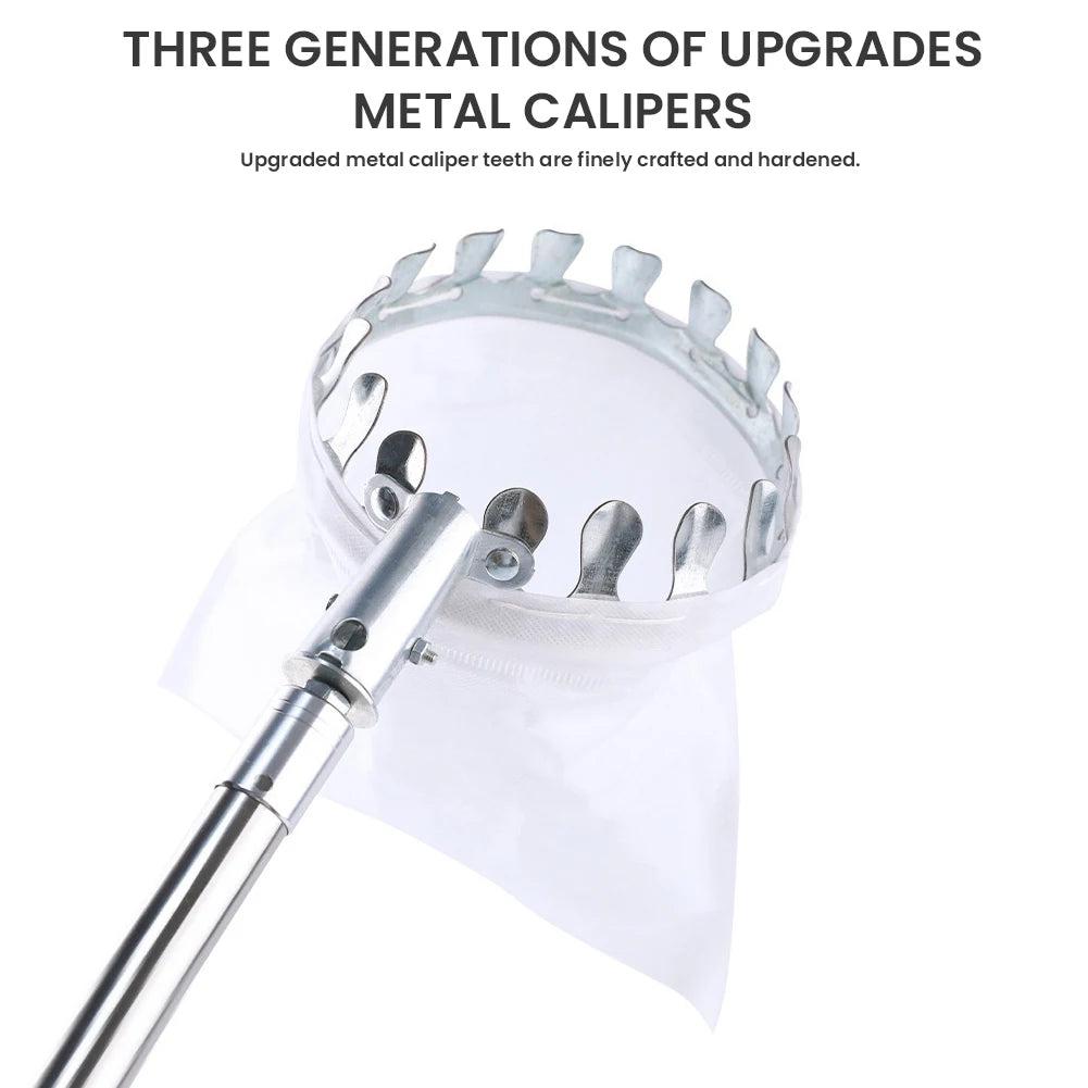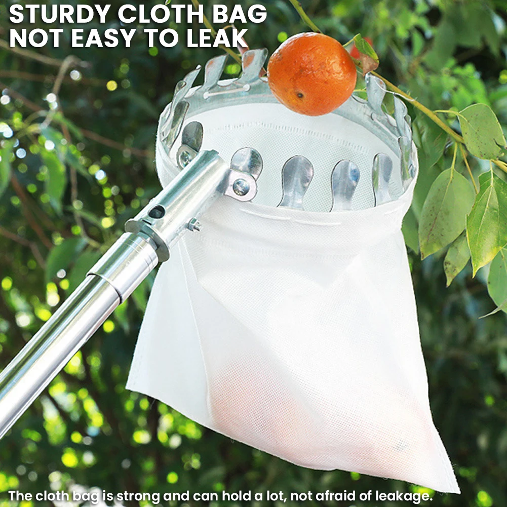 Features: 1.Adjustable Length Design: This fruit picking tool is composed of interconnecting stainless steel rods. You can add or reduce the number of rods to adjust the total length, making it safer and more efficient for for high tree orchard picking tool fruits without the need for a ladder or climbing. 2.Sturdy Stainless Steel Construction: Both the picking head and rods are made of sturdy stainless steel. The fruit picker head comes with a cloth bag, and the handle at the end of the rod provides a comfortable and slip-resistant grip, enhancing work efficiency. 3.Versatile Storage Solution: The multifunctional storage bag offers a practical solution for collecting fruits as you pick. After harvesting, the fruits picker tool can be easily disassembled and stored in the storage bag. 4.Smooth Teeth Design: The picking mouth features multiple concave smooth teeth. The edge of the basket's teeth is specially designed to prevent damage to fruits during the picking process. Connect the basket to the rod, place the fruit stem between two teeth, twist the rod, and the fruit will fall into the fruit catcher bag. 5.Wide Application: Suitable for picking a variety of seasonal fruits including apples, pears, lemons, oranges, apricots, mangoes, limes, nectarines, grapefruits, plums, cherries, persimmons, and more. Specification: Origin: Mainland China Size: Metal head fruit picker: 24*16cm Material: Metal