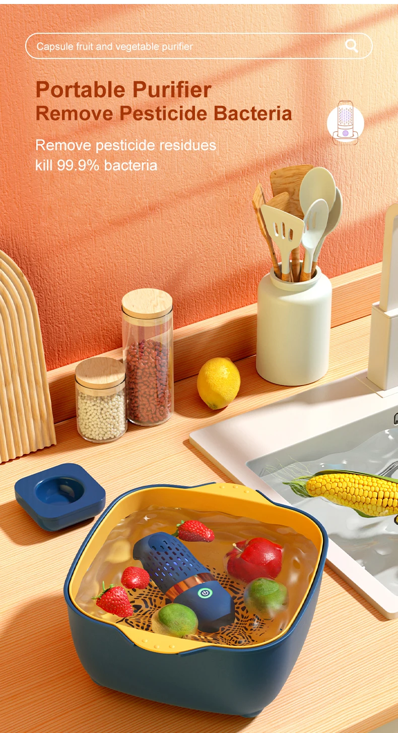 Fruit Vegetable Washing Machine Capsule Shape Wireless Food Purifier Household Pesticide Disinfection Vegetables Cleaner Machine