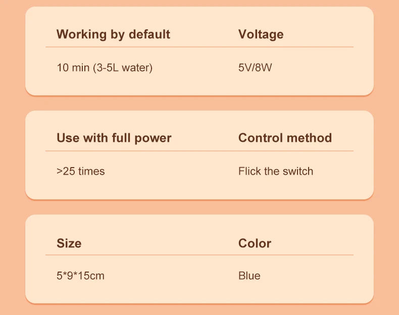 3.Safety Protection:IPX7 waterproof, no leakage, safer to use. 5V DC, no direct contact with strong electricity, safe and stable, long service life.