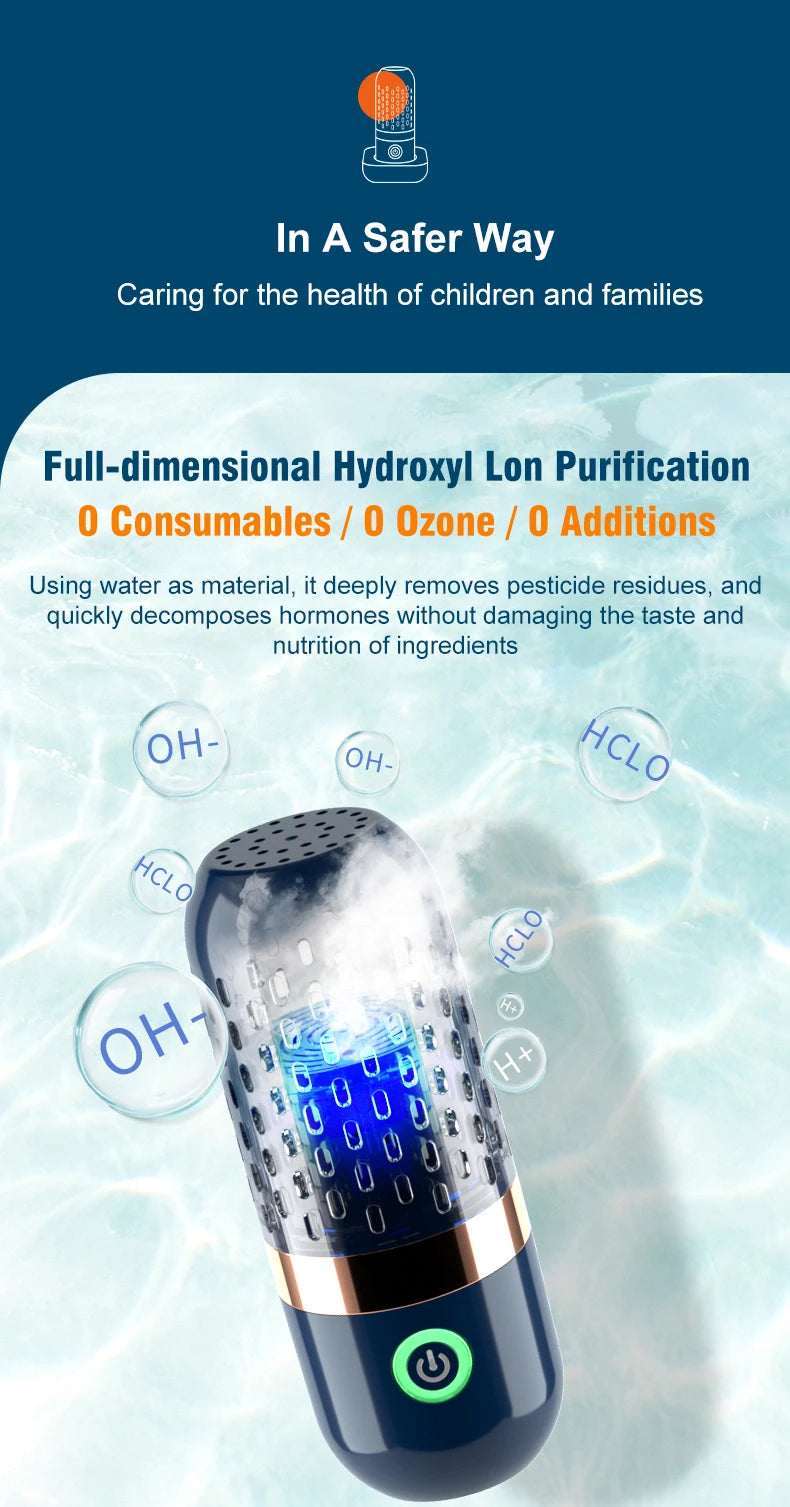 OH- purification technology, no chemical additions, no food damage, and easy to carry.