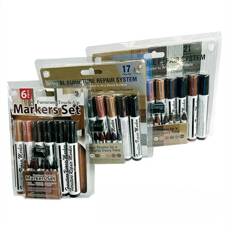 Furniture Repair Kit Wood Markers - Set of 21pcs/17pcs/13pcs - Markers and Wax Sticks with Sharpener Kit, for Stains, Scratches, Wood Floors, Tables, Desks, Carpenters, Bedposts, Touch Ups, and Cover Ups