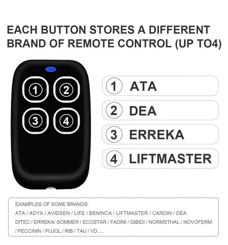 100% Compatible with 433MHz 433.92MHz FixedCode and Learning Code Remote Controls.