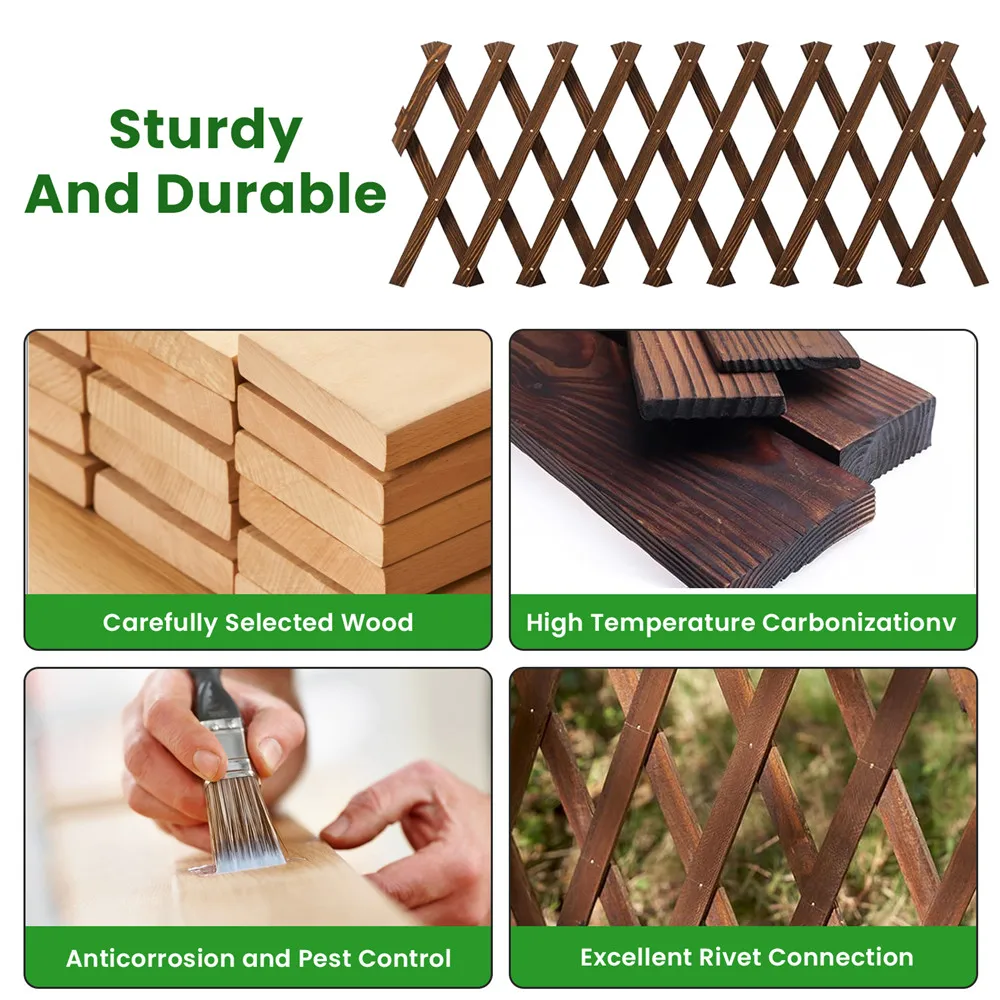 VERSATILE DESIGN: This expandable trellis is crafted from durable wood and can be assembled in various configurations to partition outdoor spaces or support climbing plants. remains portable for repositioning or storage when not in use.