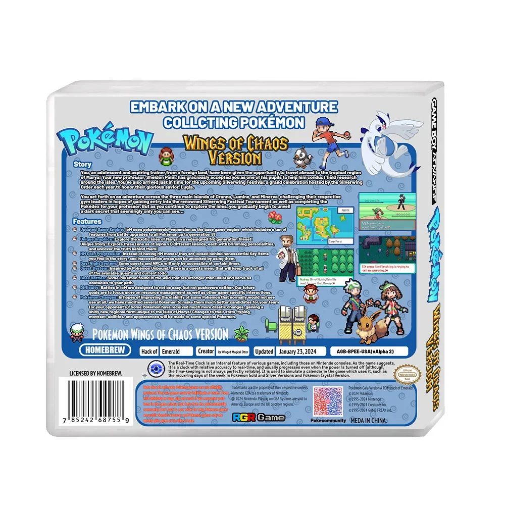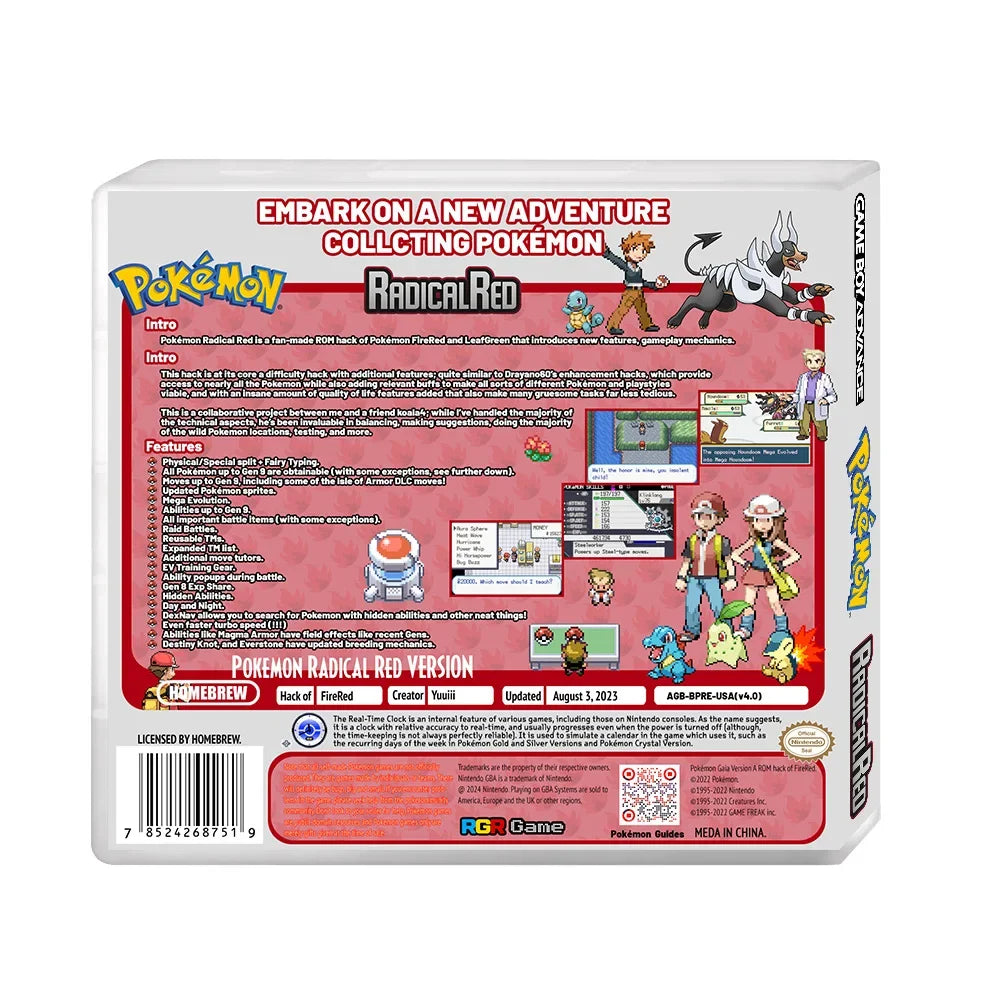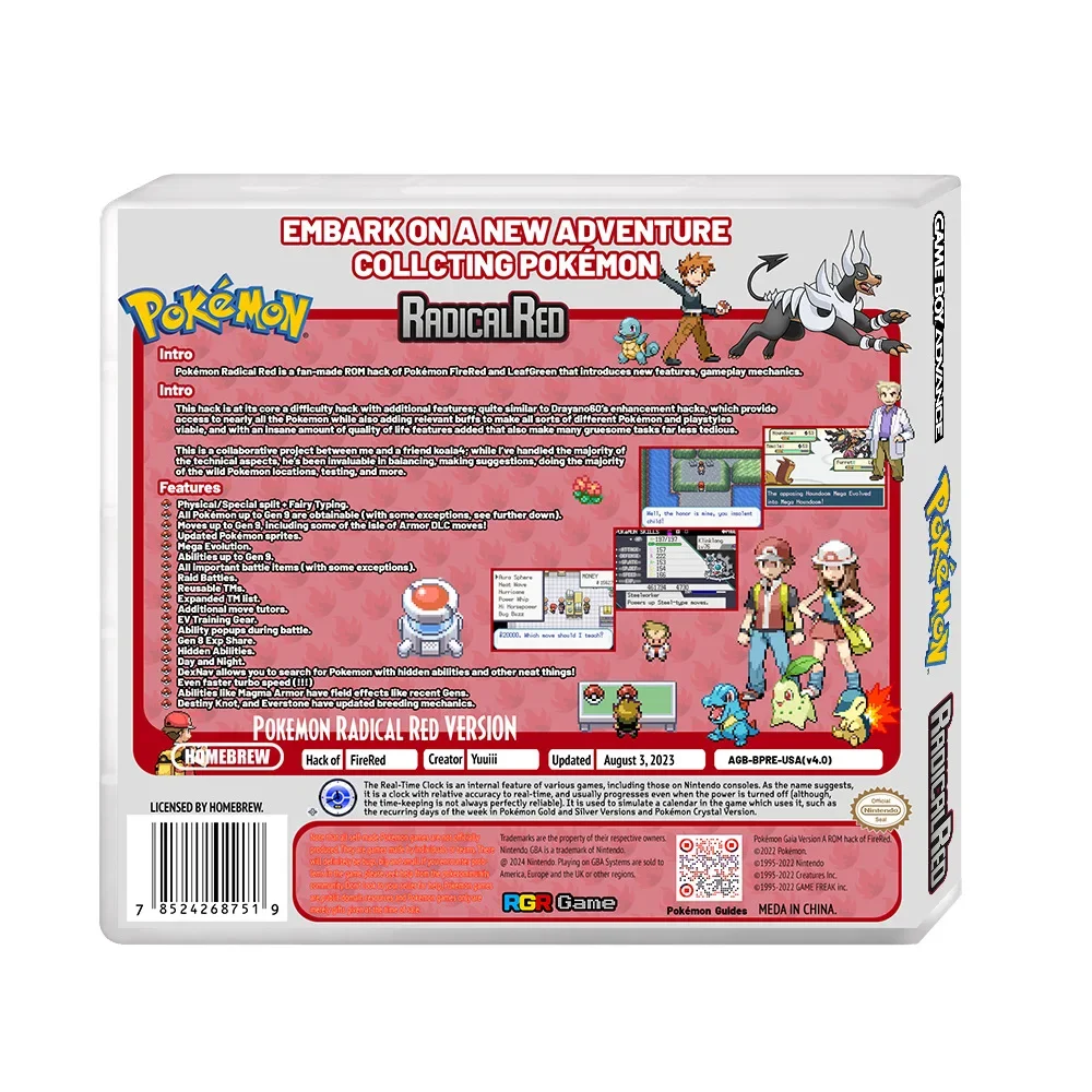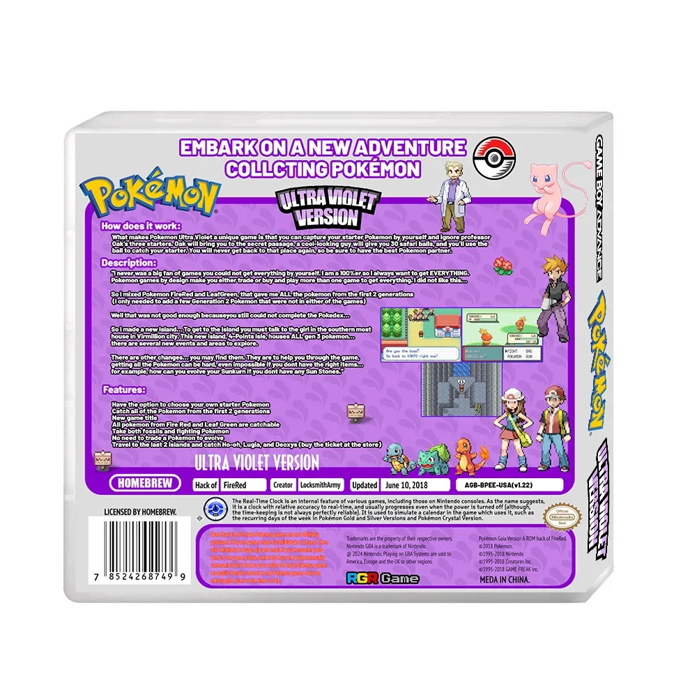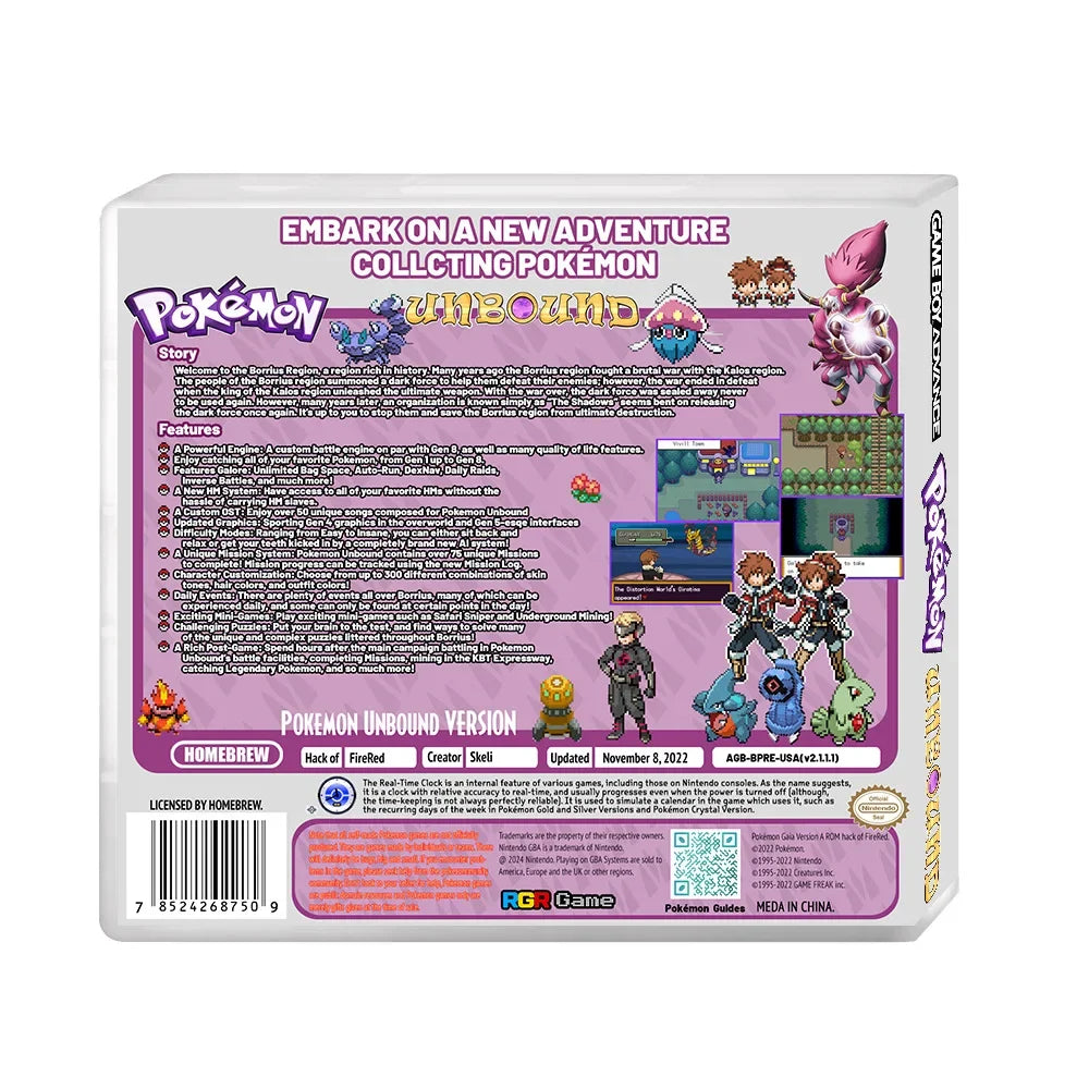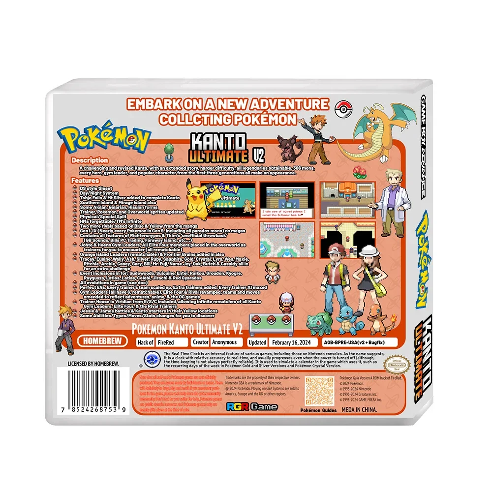 GBA RTC Pokemon Real Clock New Version 2.0 Game Card Featured Popular English Games