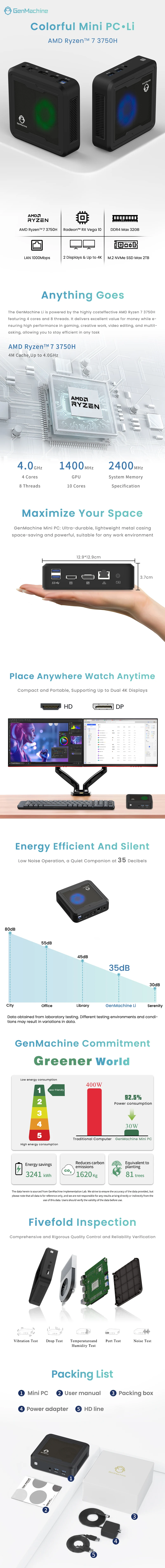 GenMachine New Mini PC AMD Ryzen 7 3750H CPU Windows 10/11 DDR4 Ren3000 3750H Desktop USB WIFI 5 1000M AMD NUC Gaming Computer