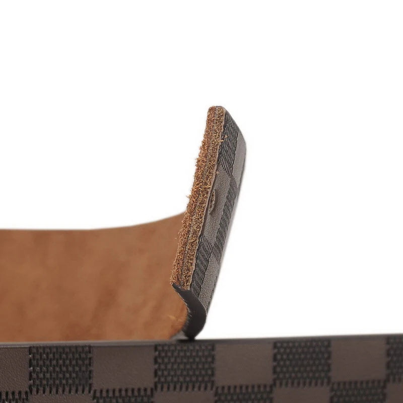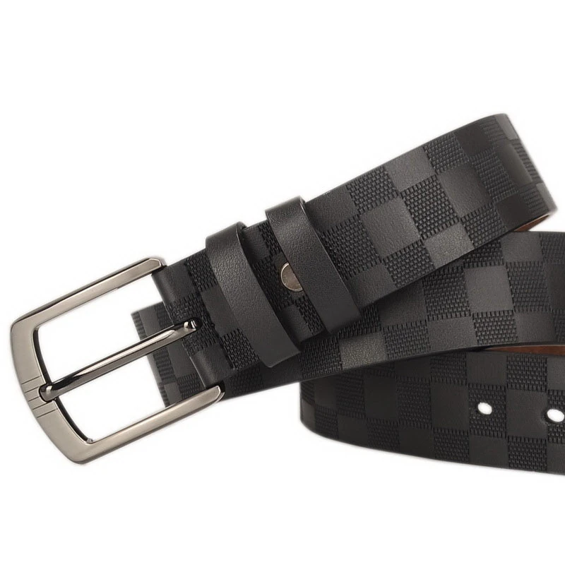 Genuine leather men's cowhide pin buckle belt checkerboard pattern belt fashion new belt holiday gift