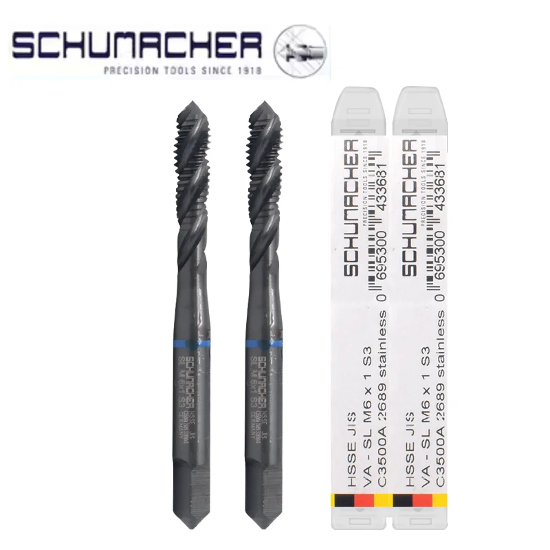 Germany Original SCHUMACHER Blue Ring JIS Standard Spiral Fluted Tap Pointed M3 M4 M5 M6 Machine Thread Taps For Stainless Steel
