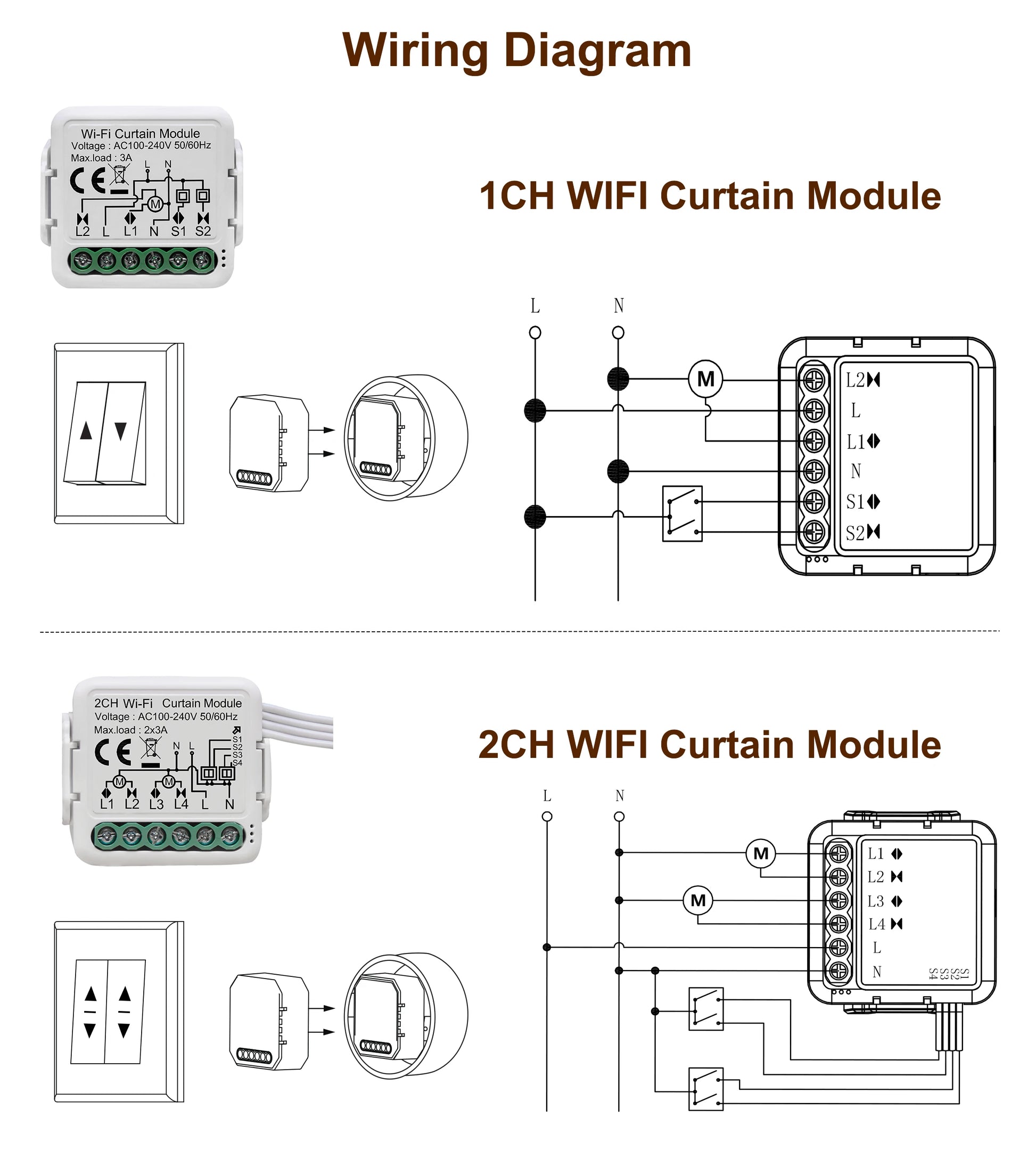 GIRIER Tuya Smart Wifi Curtain Module Blind Switch for Roller Shutter Electric Motor 1/2 Gang Compatible with Alexa Google Home