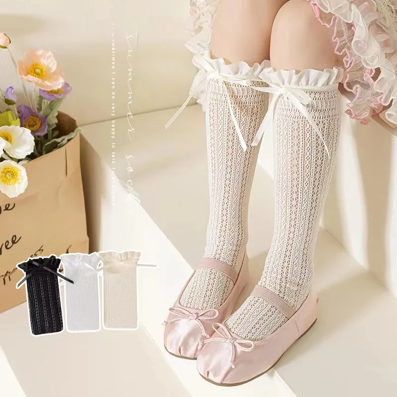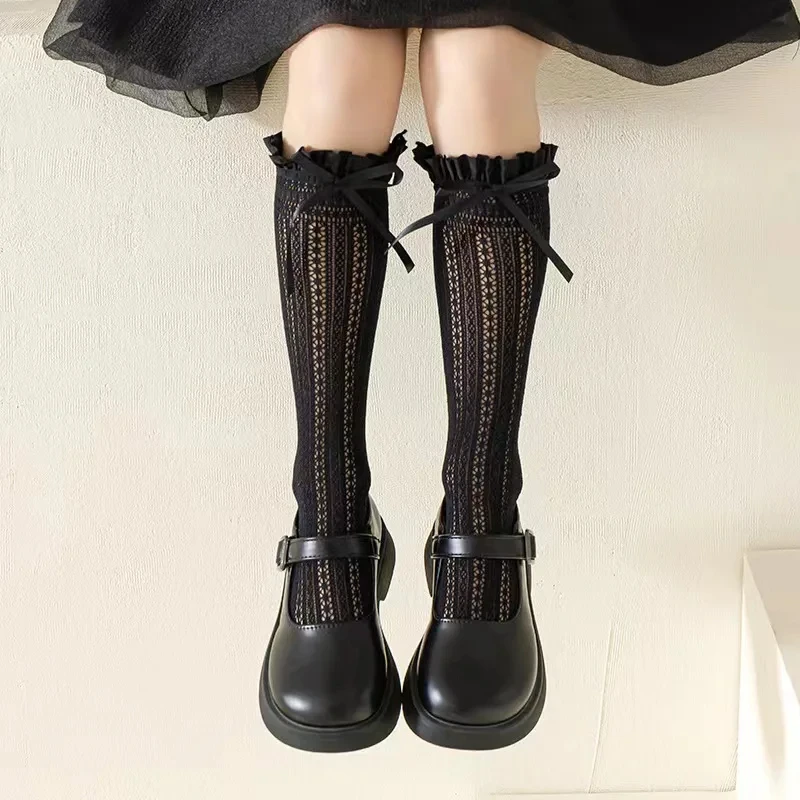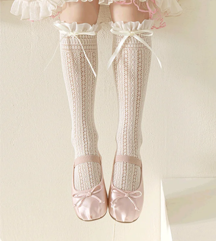 Girls Long Tube Lace Stockings Sweet Bow Pattern Mesh Sock Baby Girl Ballet Fishing Net Frilly Socks Lolita Leggings