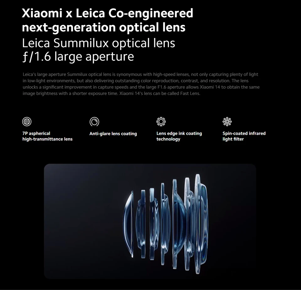 Leica Summilux optical lens has a large aperture making photos lighter, brighter, and clearer.
