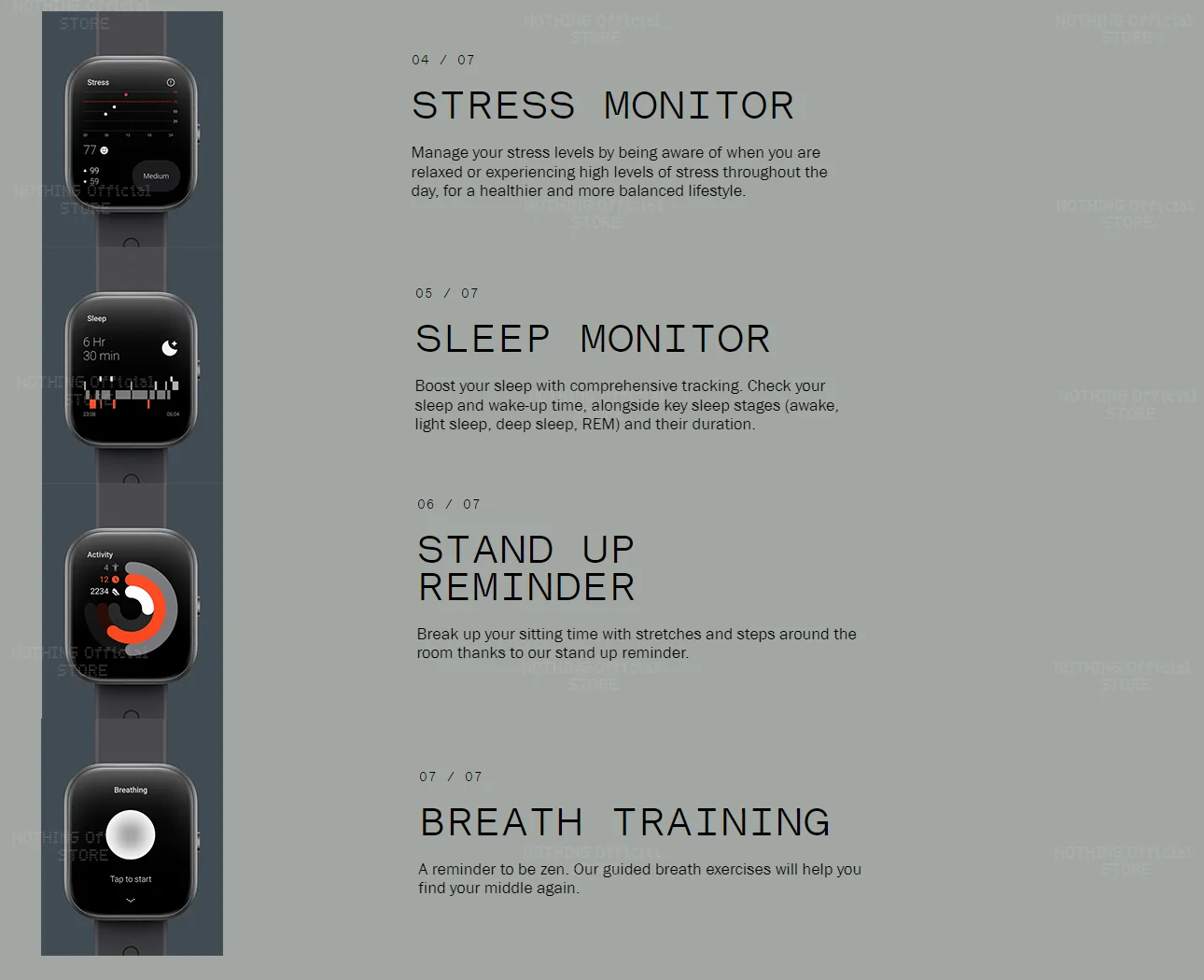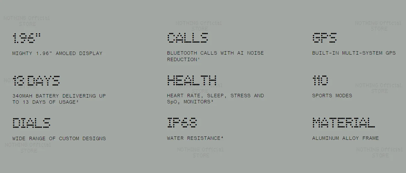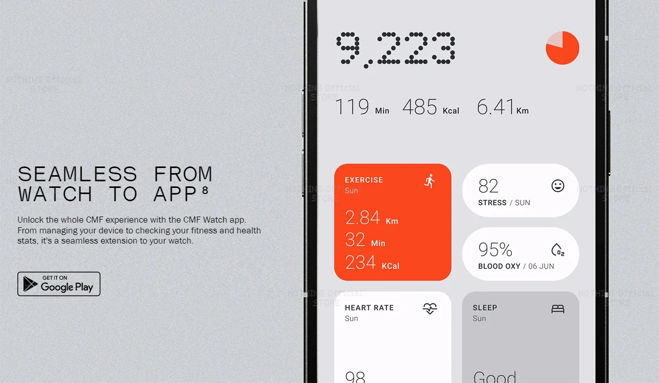 Switch between dozens of watch dials via the CMF Watch app⁵. With dynamic and static choices as well as 8 always-on options. Or customise the backdrop with your favourite photographs. Our signature dot matrix style keeps things looking sleek.