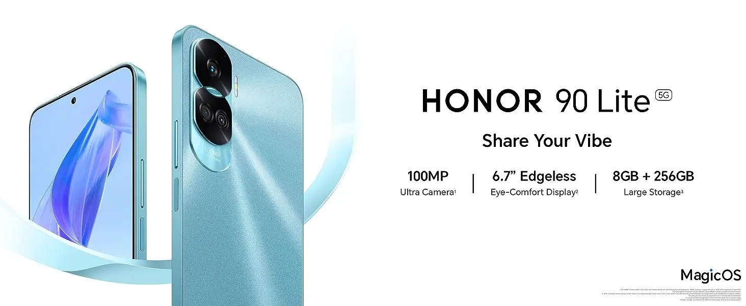 Global Version HONOR 90 Lite 5G with 100MP Triple Camera 8GB RAM 256GB ROM 6.7” 90Hz Display 4500mAh Battery Dual SIM Android 1