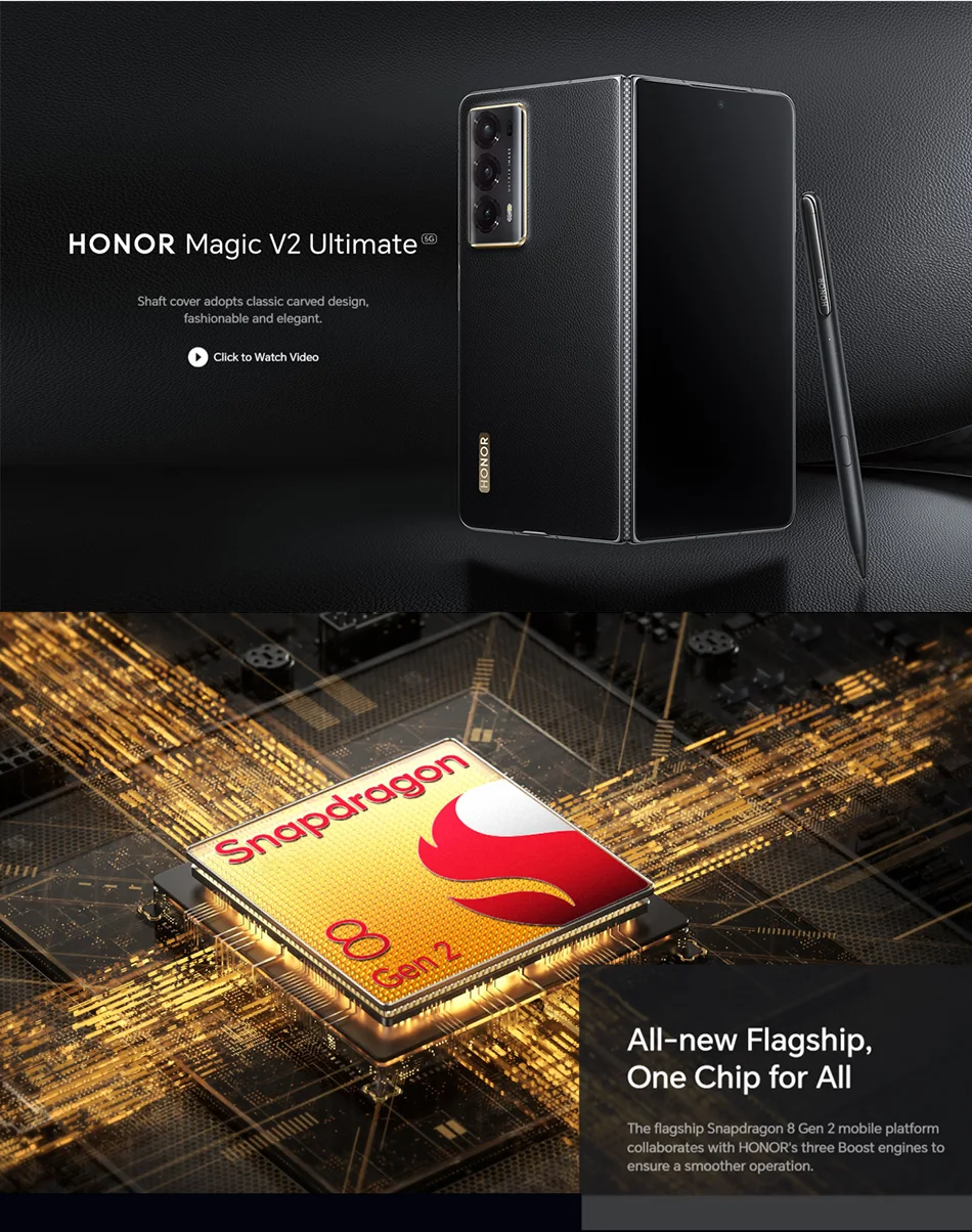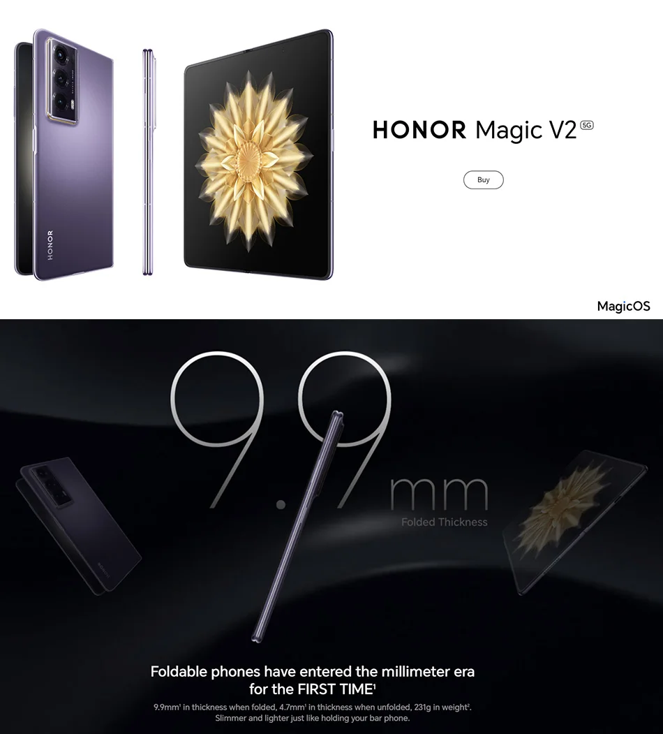 Global Version HONOR Magic V2 5G Foldable LTPO OLED 120Hz Display 7.92" 50MP Rear Cameras Snapdragon 8+ Gen 2 5000mAh 66W NFC