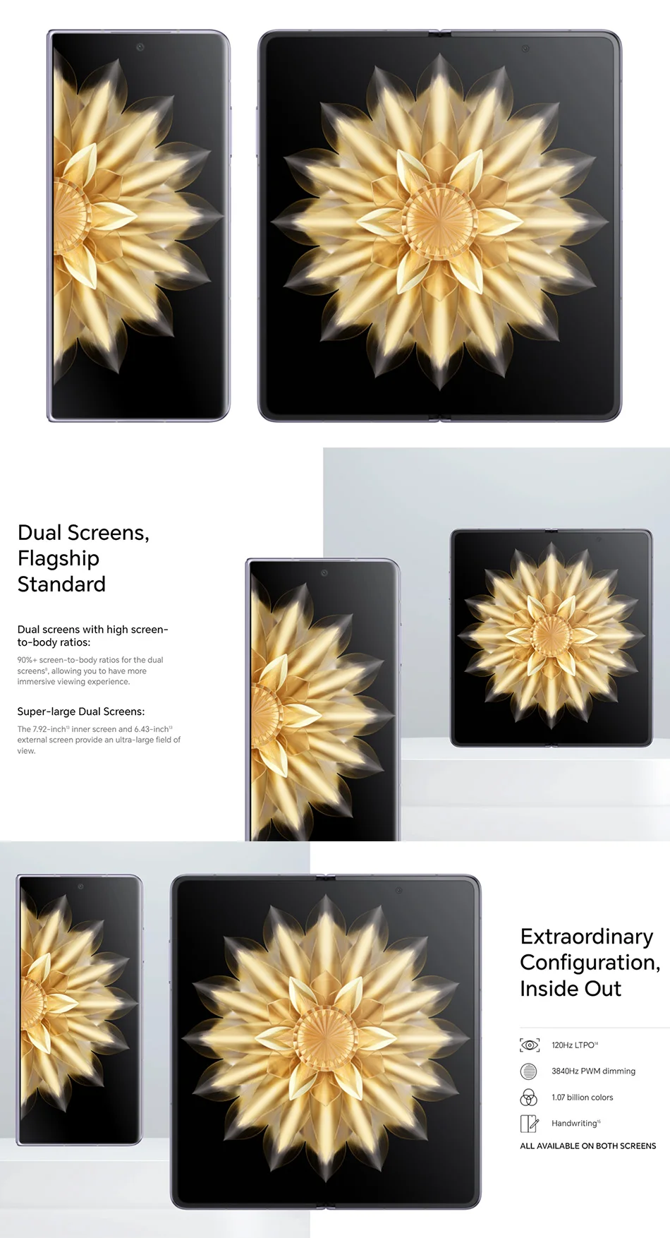 Screen:7.92" Foldable LTPO OLED, (2156 x 2344 pixels)120HZ HDR10+ Display