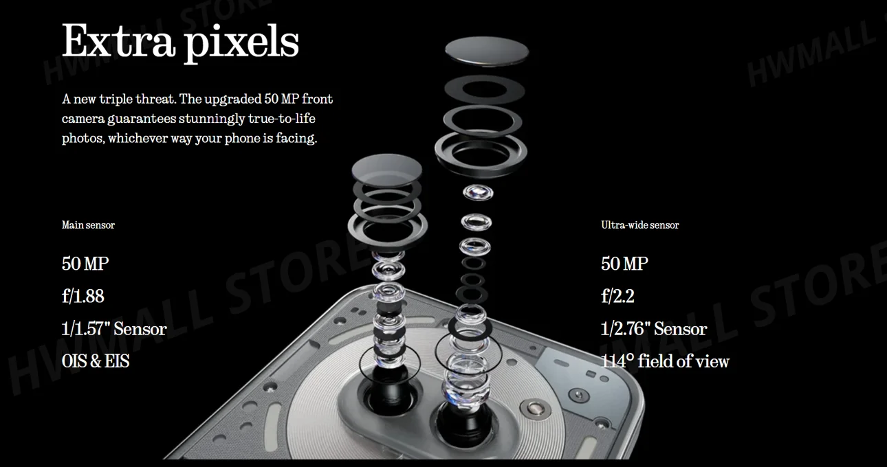Main camera:50 MP+50 MPf/1.881/1.57" sensorOIS & EIS