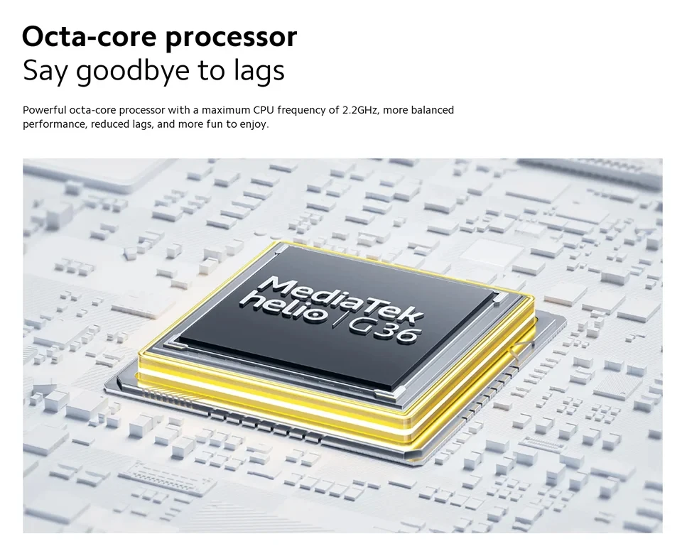 CPU -------------MediaTek Helio G36, 12 nm process, up to 2.2GHz
