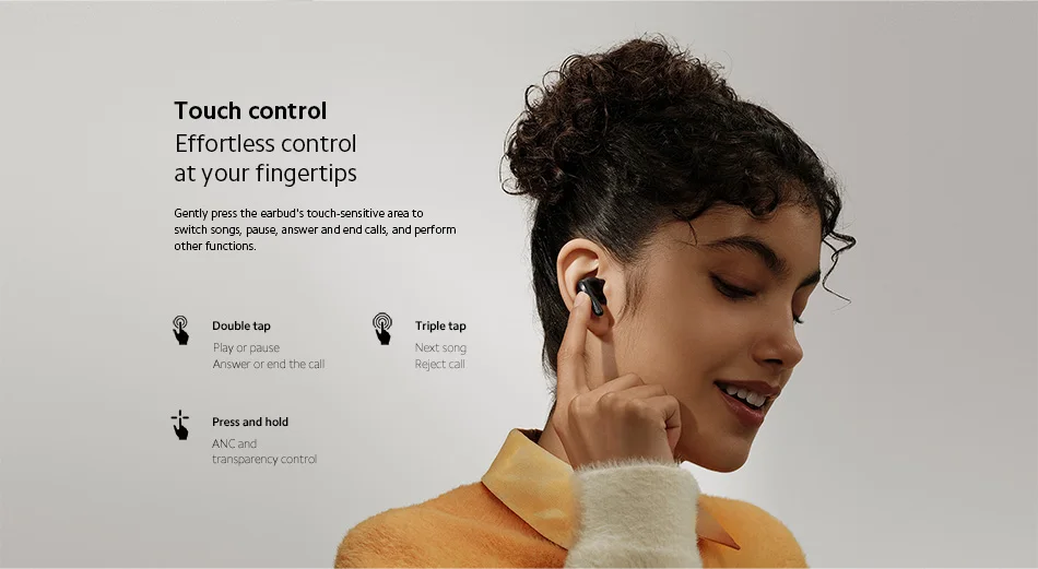Gently press the earbud's touch-sens itive area to