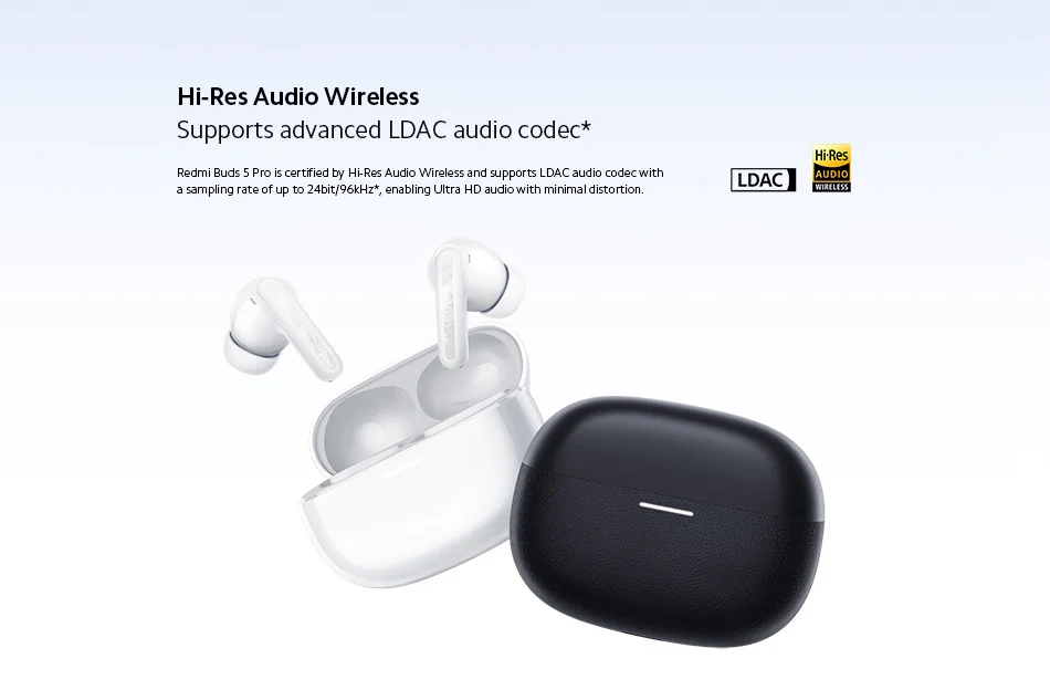 Redmi Buds 5 Pro is certified by HiRes Audio Wireless and supports LDAC audio codec with