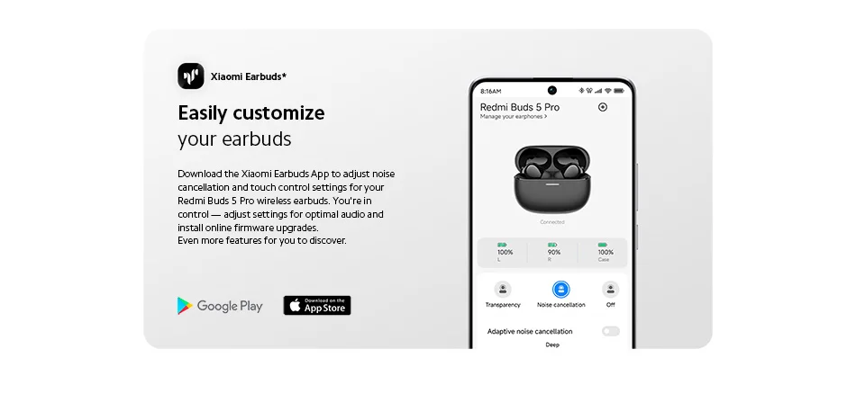 Download the Xiaomi Earbuds App to adjust noise