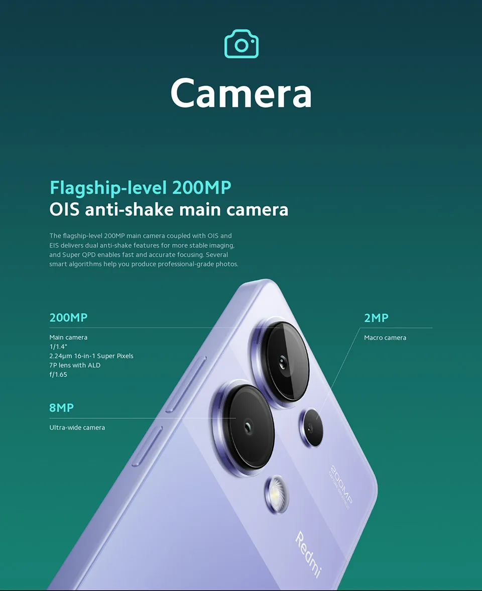 Camera---------200MP+8MP+2MP Rear Camera, 16MP Front Camera