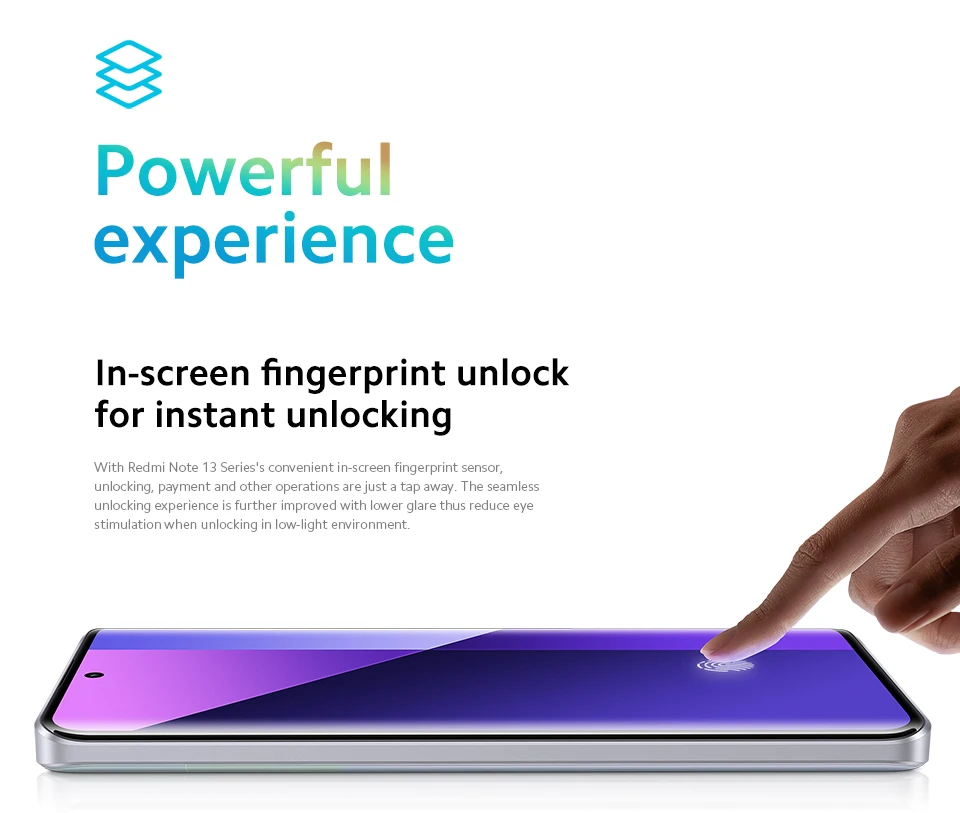 OS -------------- MIUI 14 based on Android 13, Global Version, Support Multi-Language and Google Play, In-screen fingerprint sensor, AI Face Unlock
